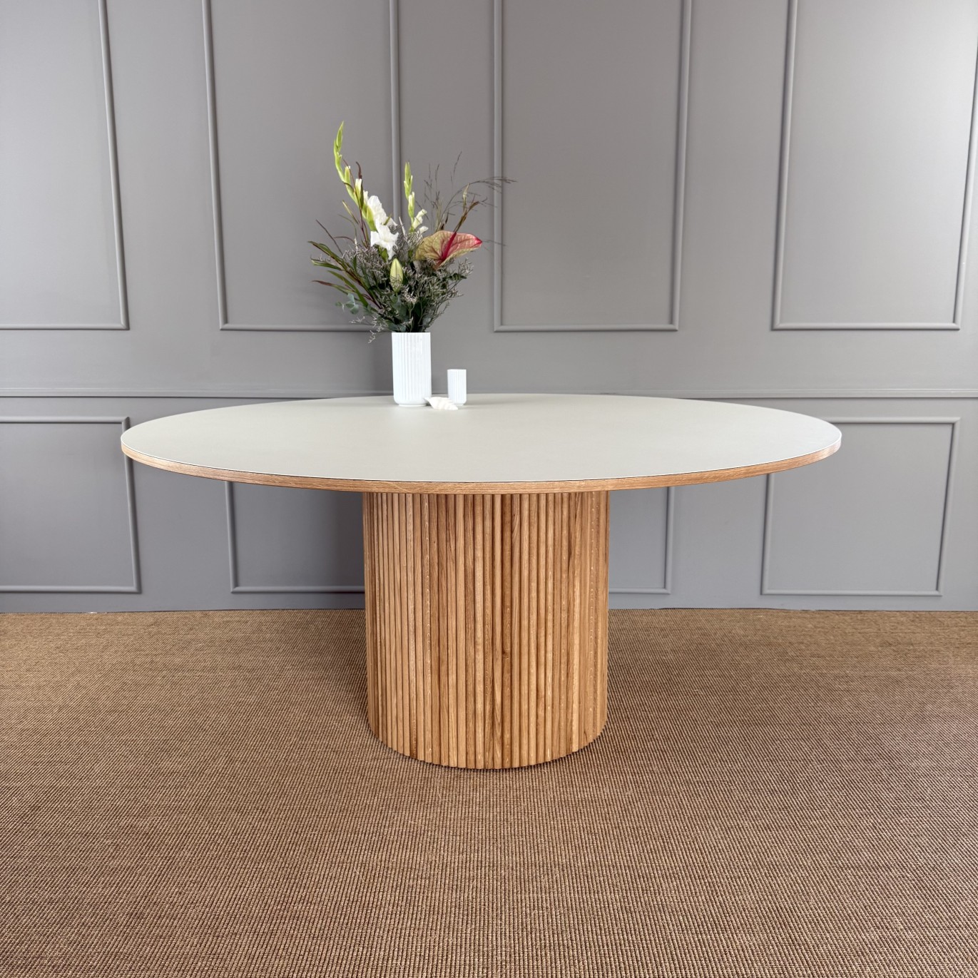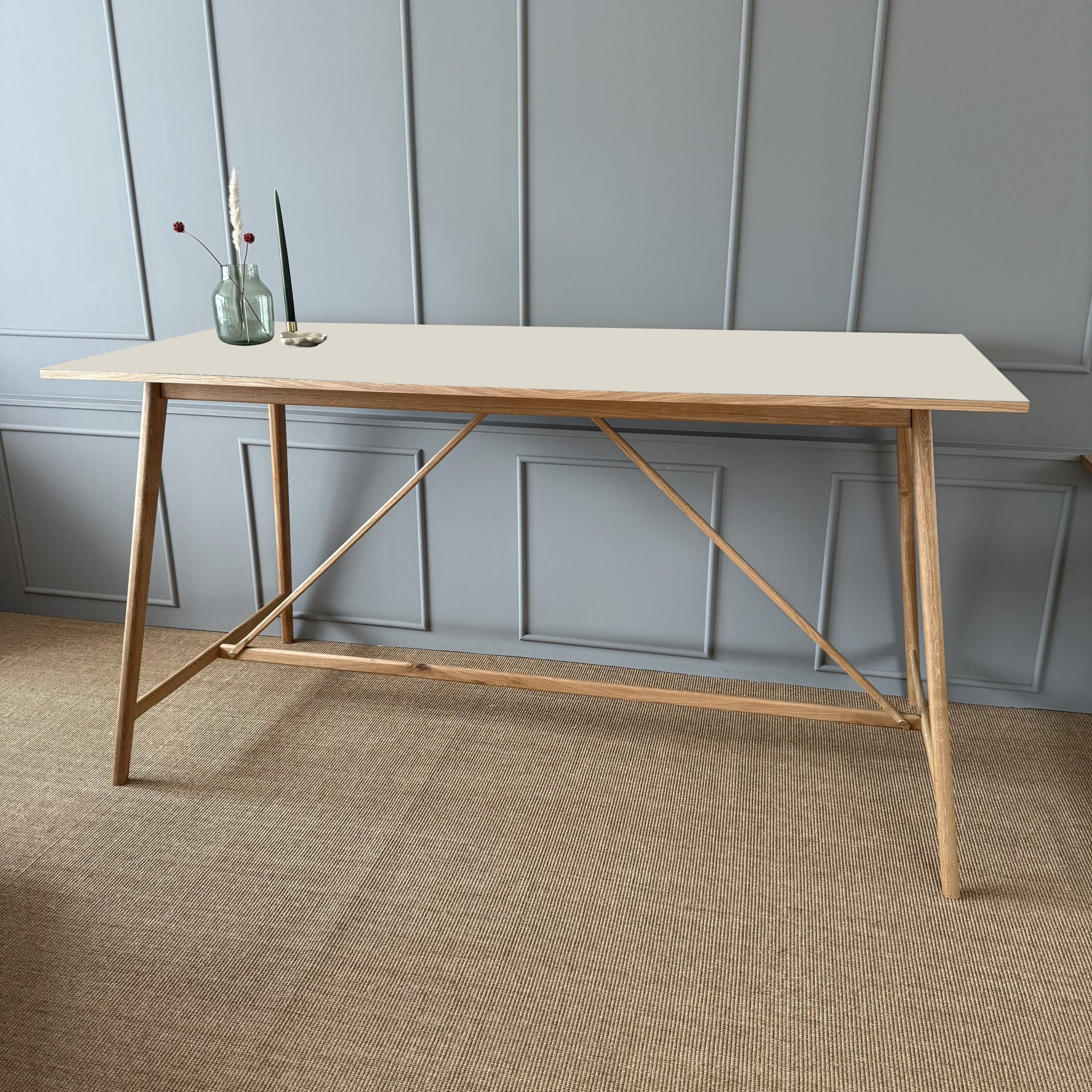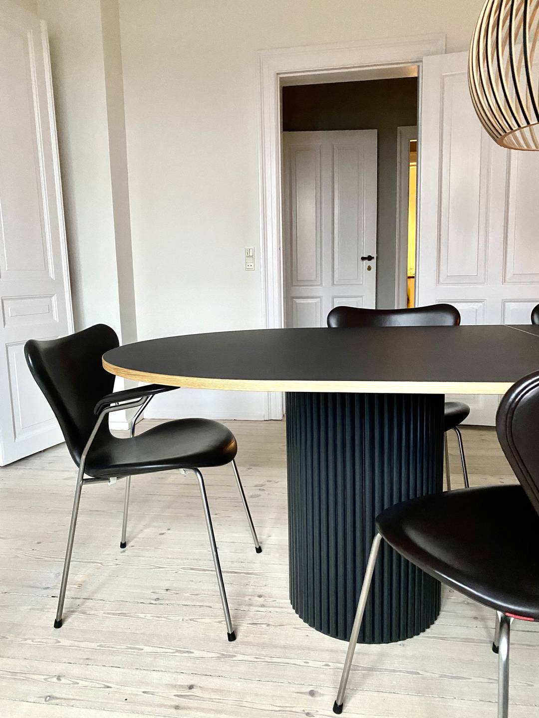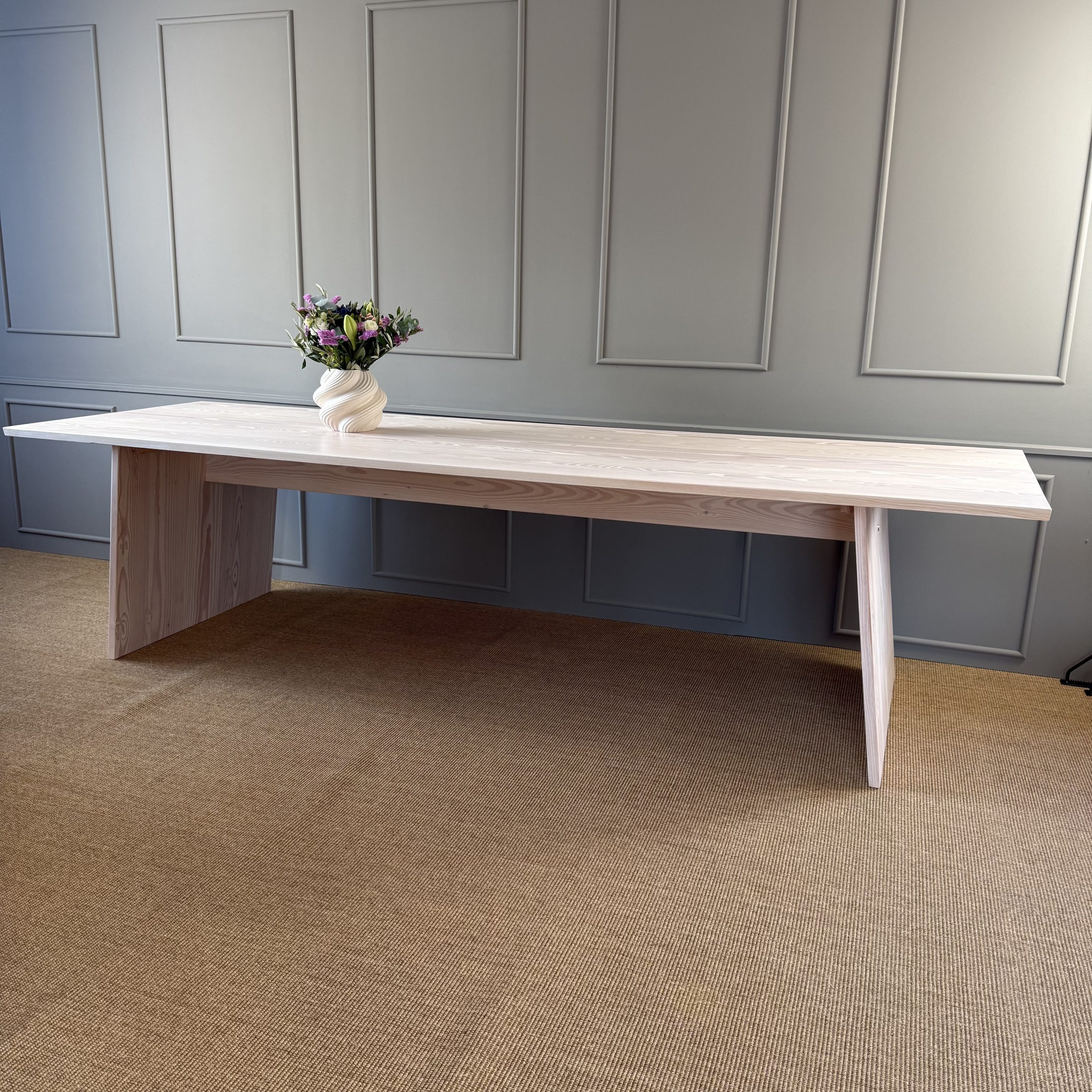 Ønsker du et moderne, minimalistisk look, kan du vælge et bord med vores elegante søjler i enten egetræslister eller lakeret i en farve, der matcher eller giver modspil til dit interiør.