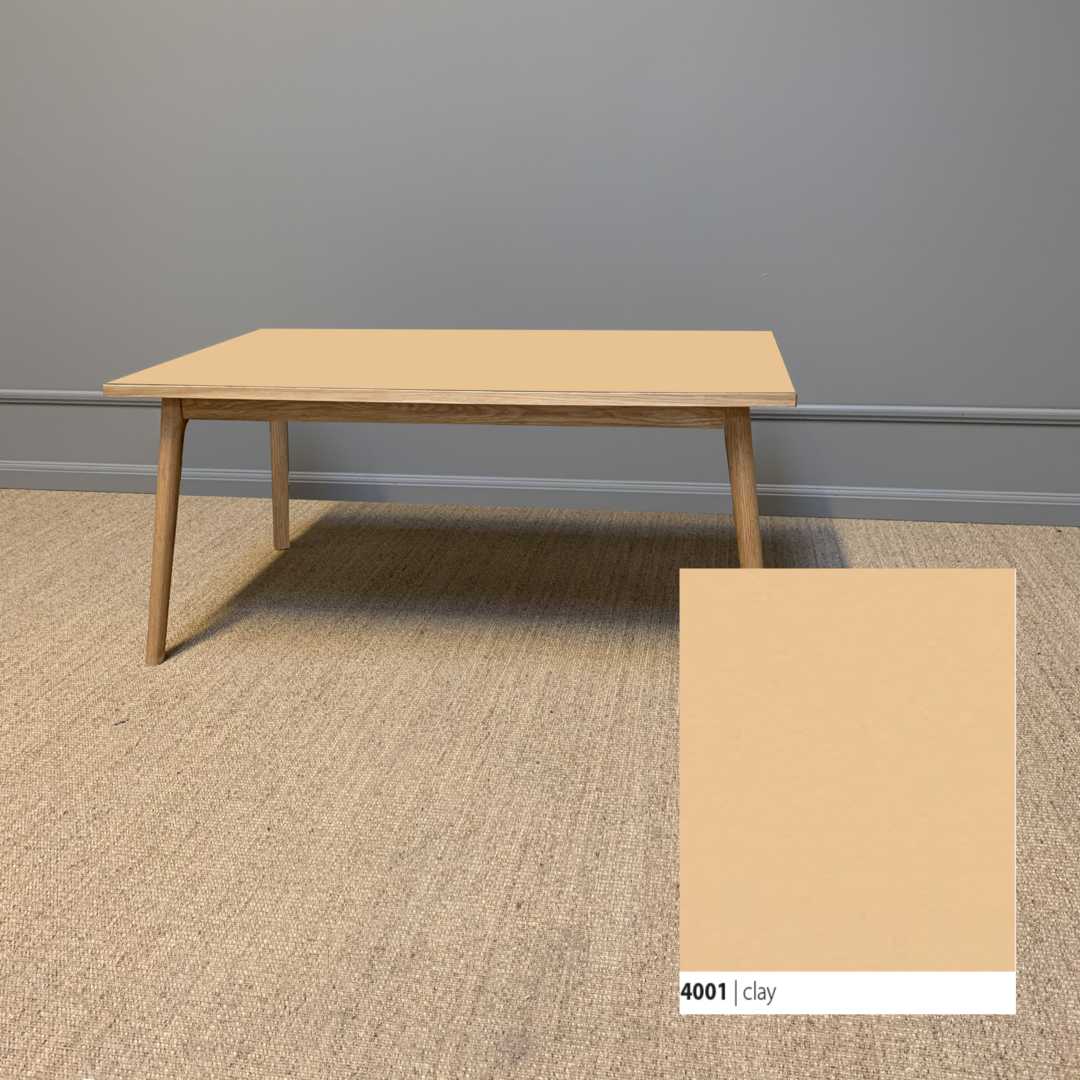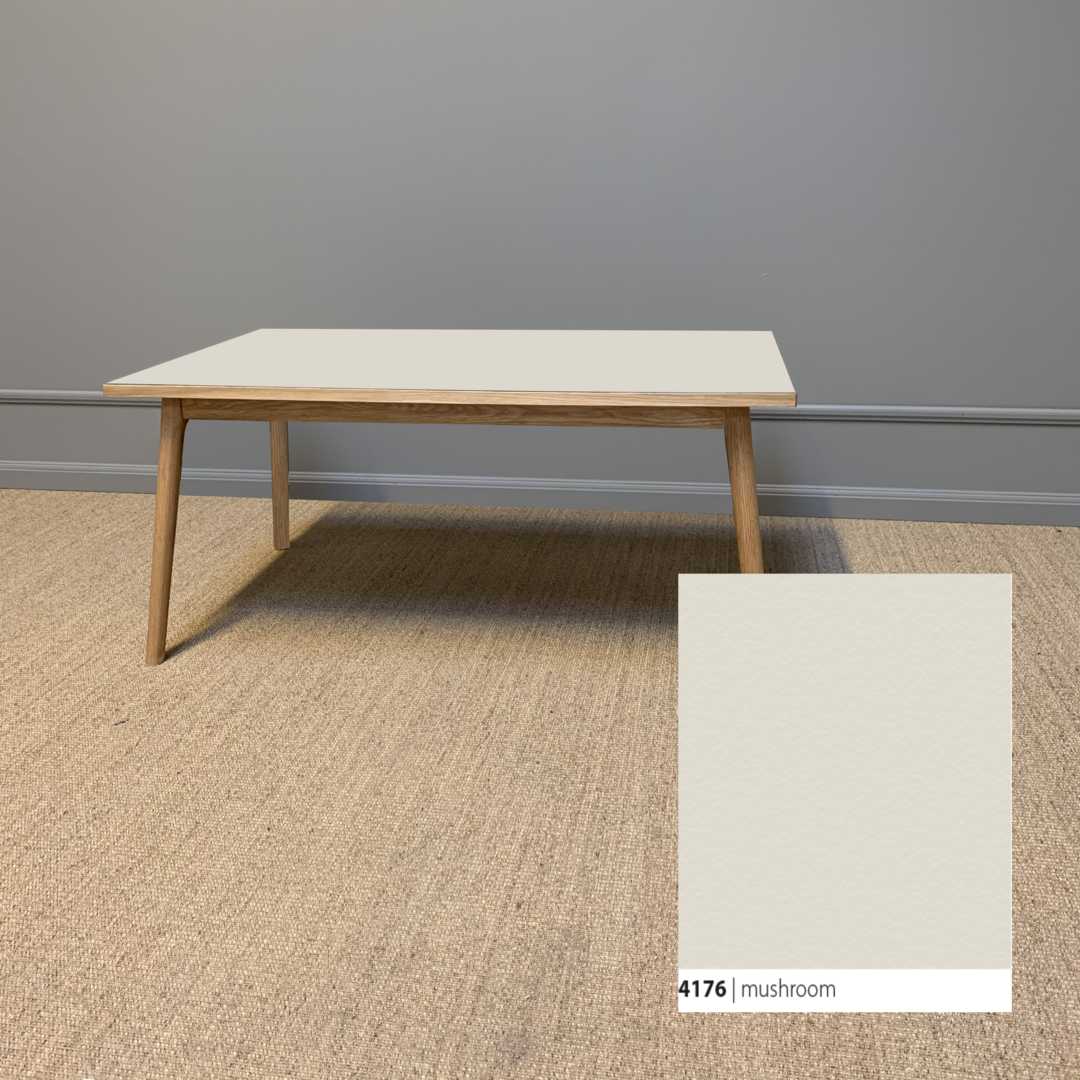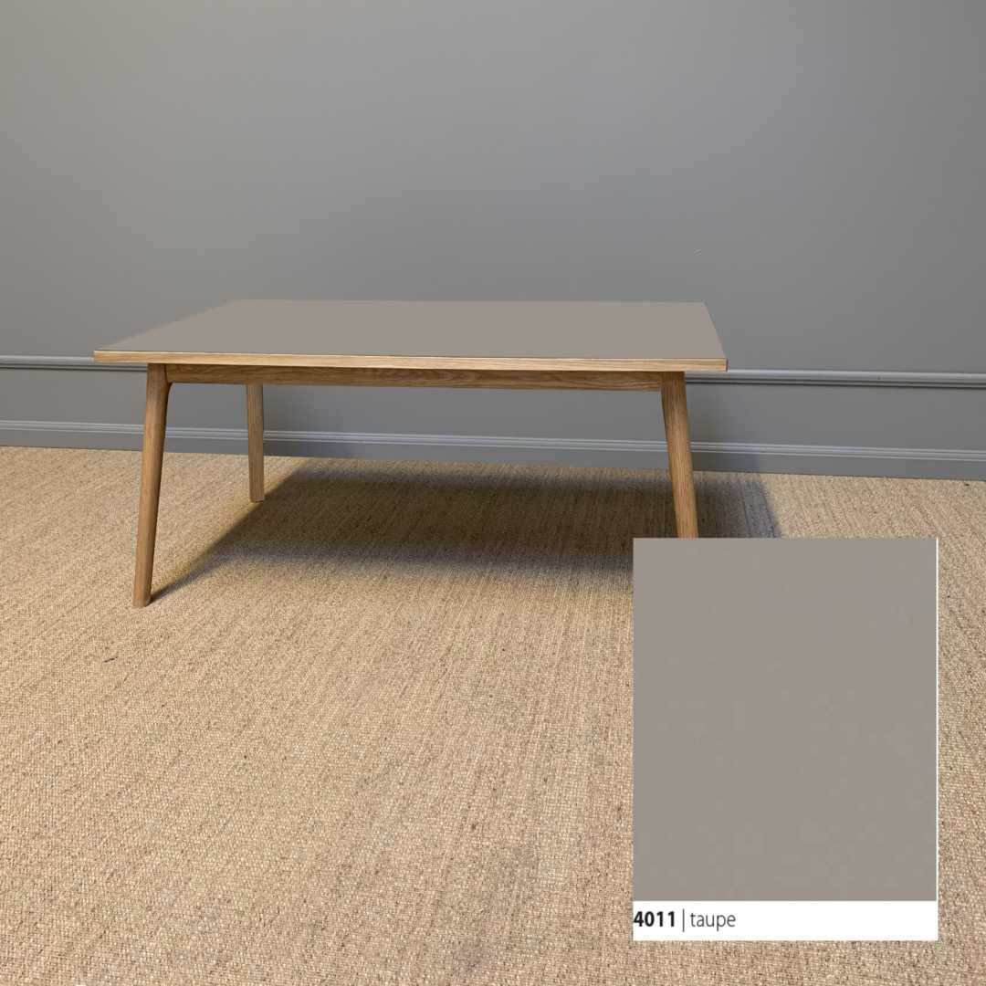 Et smukt og klassisk sofa med et moderne udtryk, der tager afsæt i kombinationen af den bløde linoleumsbordplade, som både er funktionel og vedligeholdelsesvenlig, og et håndlavet smukt stel til at bære bordet.
