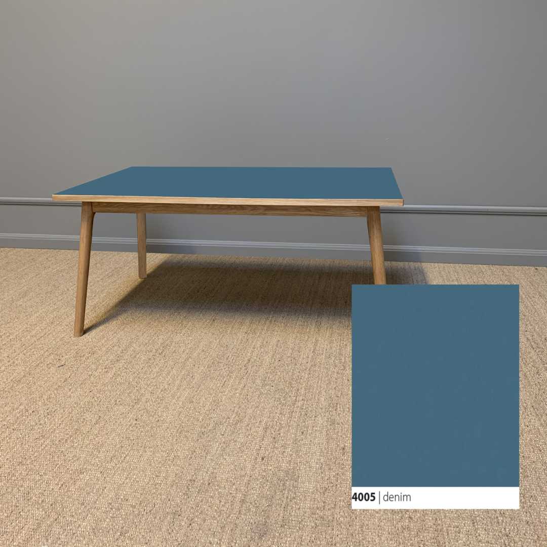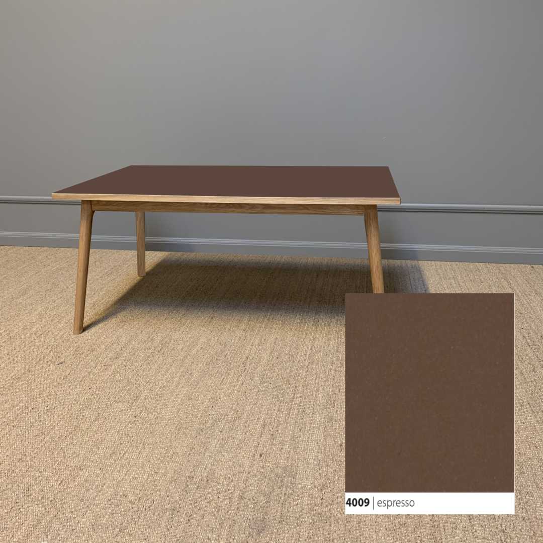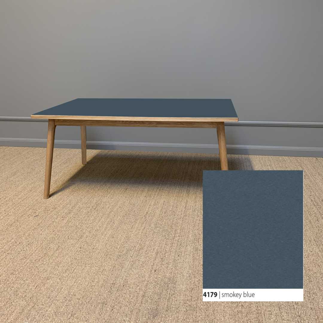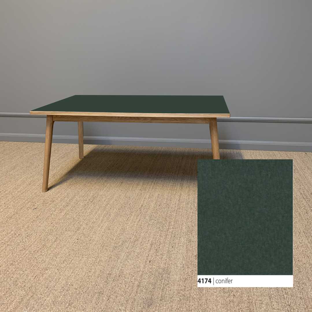 Et smukt og klassisk sofa med et moderne udtryk, der tager afsæt i kombinationen af den bløde linoleumsbordplade, som både er funktionel og vedligeholdelsesvenlig, og et håndlavet smukt stel til at bære bordet.