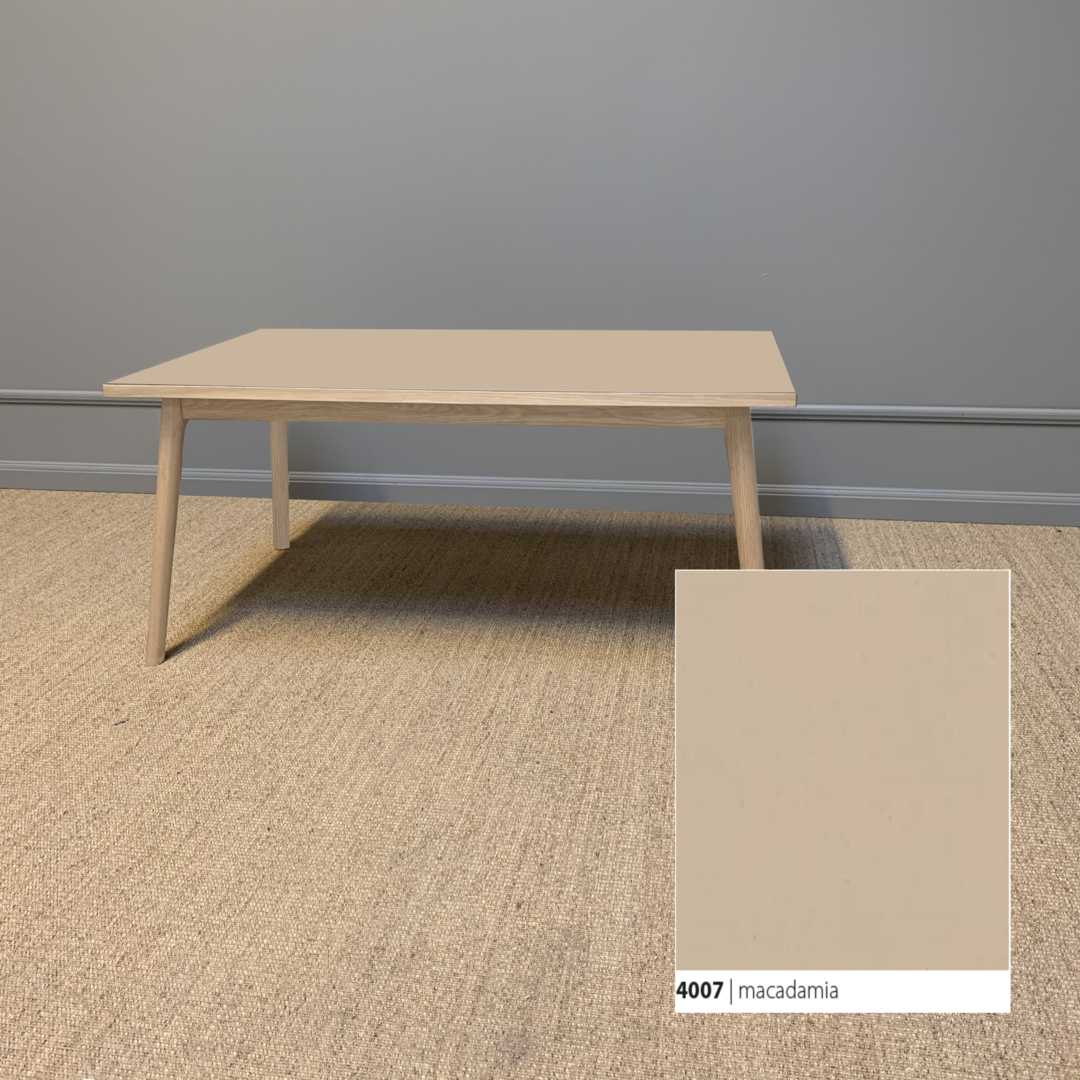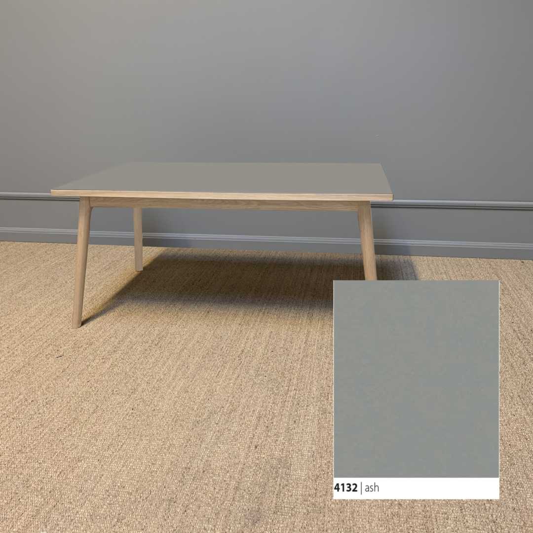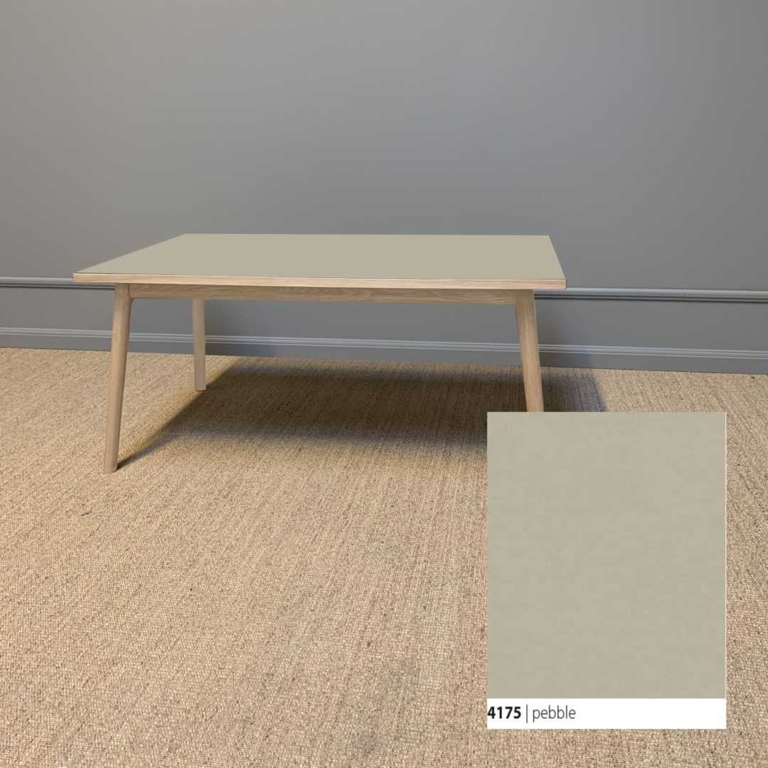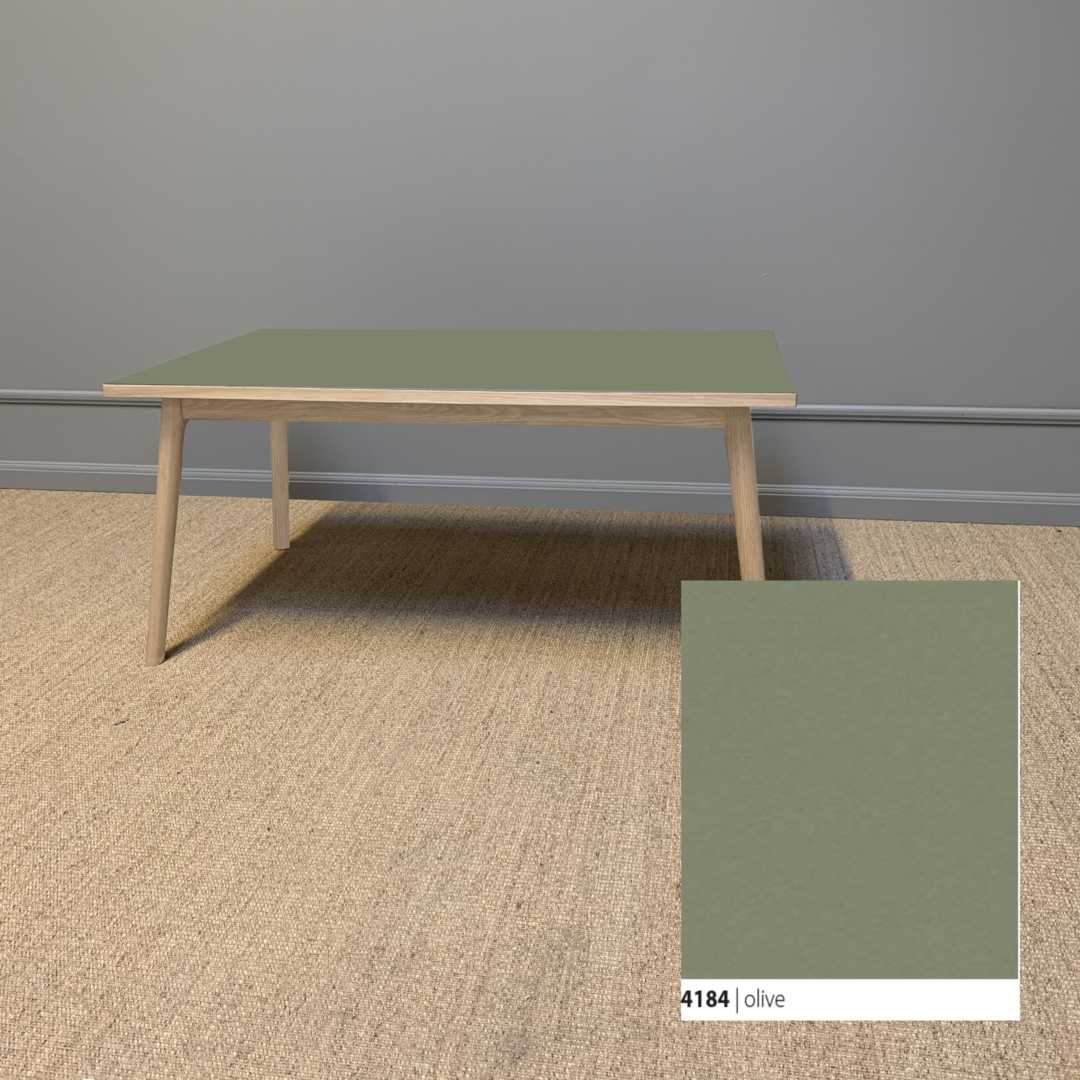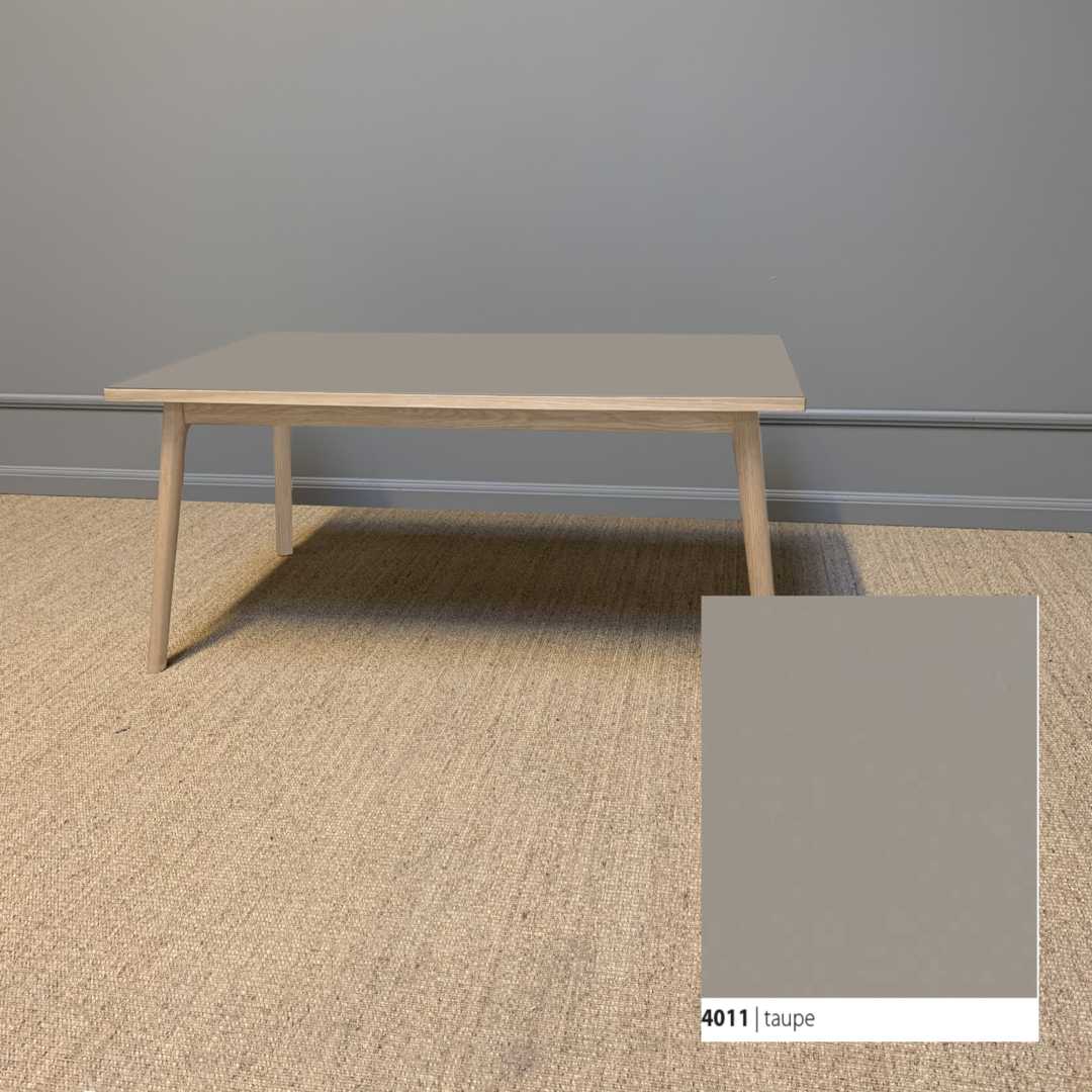 Et smukt og klassisk sofa med et moderne udtryk, der tager afsæt i kombinationen af den bløde linoleumsbordplade, som både er funktionel og vedligeholdelsesvenlig, og et håndlavet smukt stel til at bære bordet.