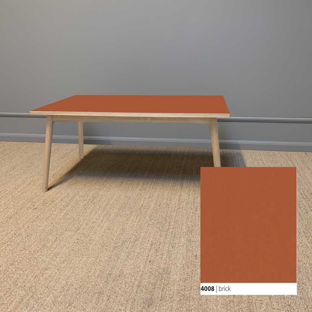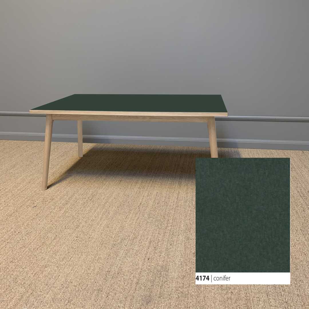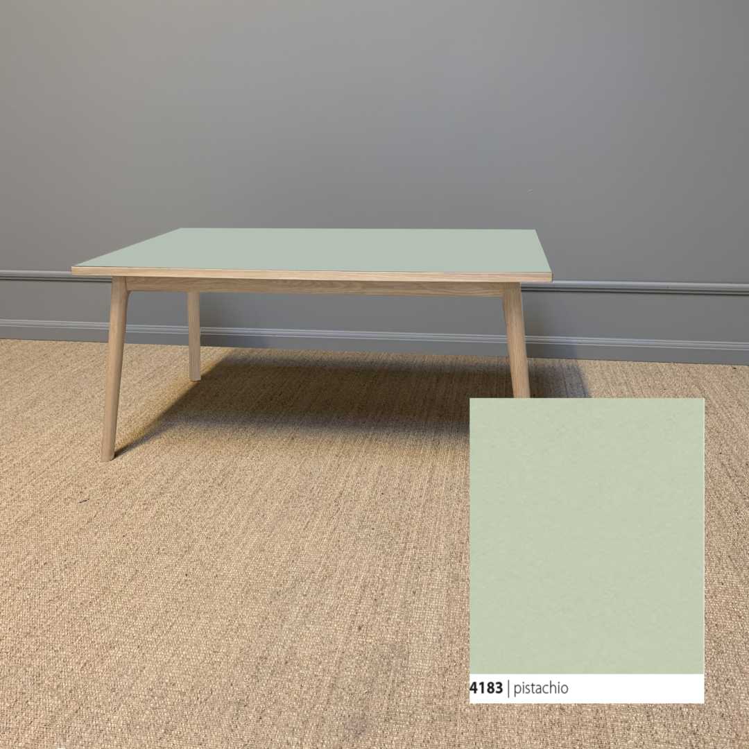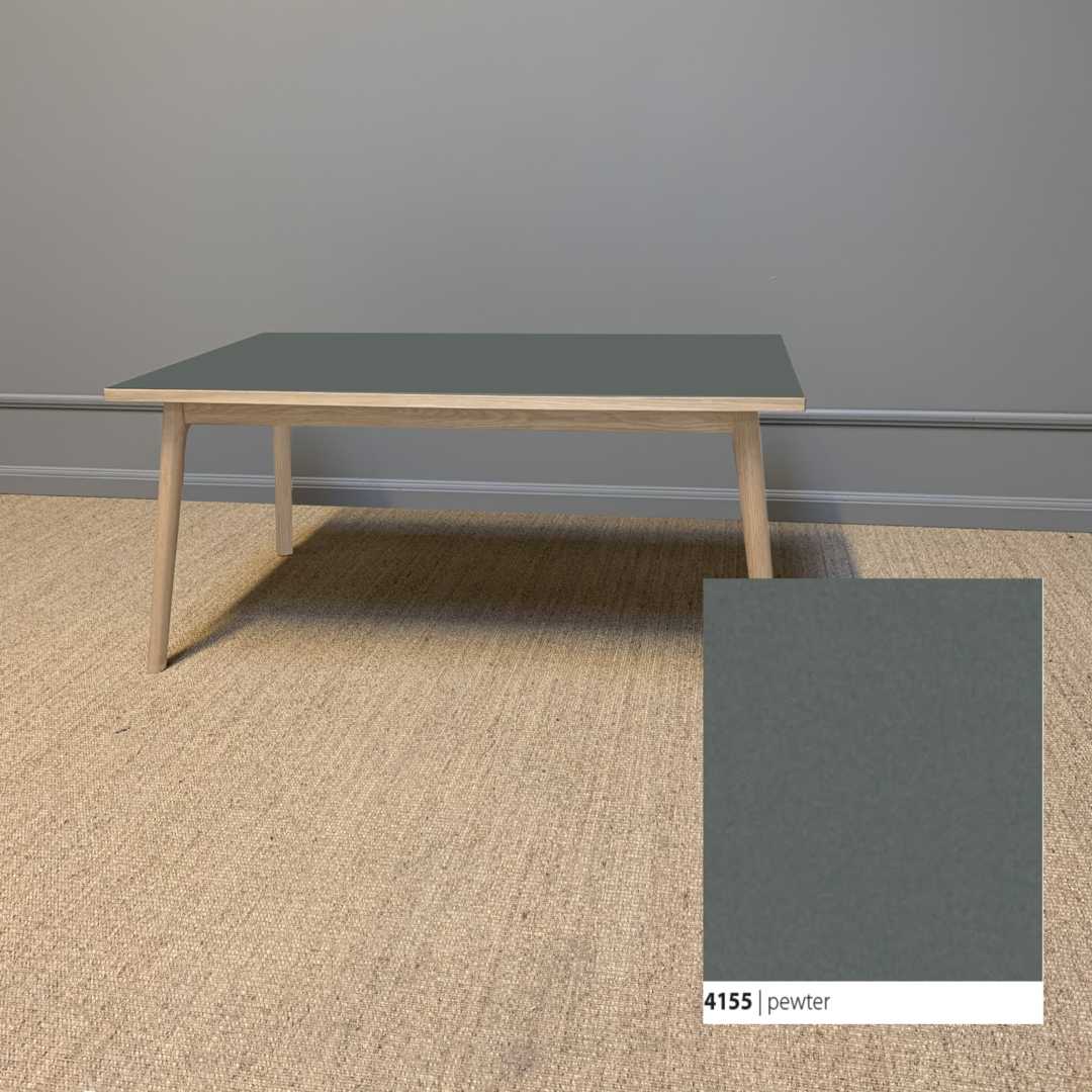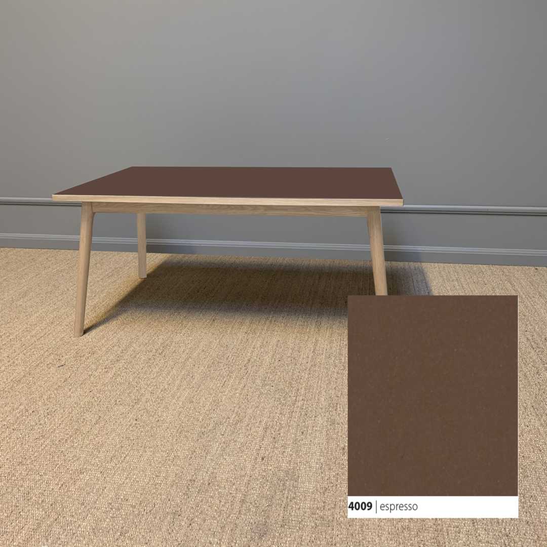 Et smukt og klassisk sofa med et moderne udtryk, der tager afsæt i kombinationen af den bløde linoleumsbordplade, som både er funktionel og vedligeholdelsesvenlig, og et håndlavet smukt stel til at bære bordet.