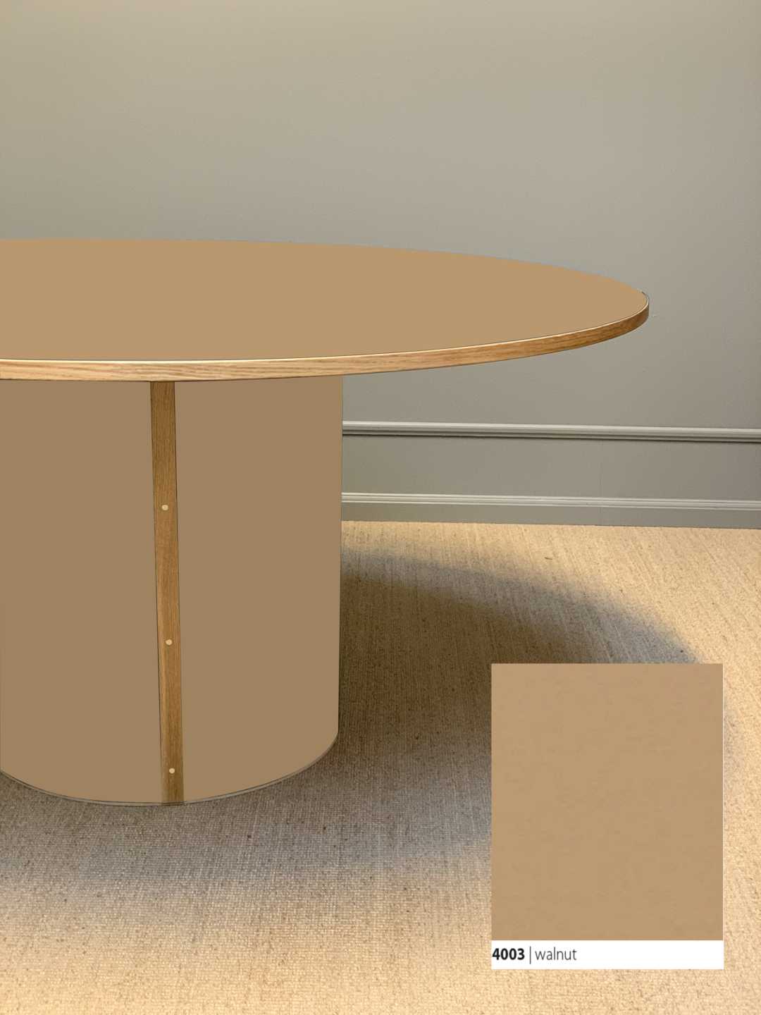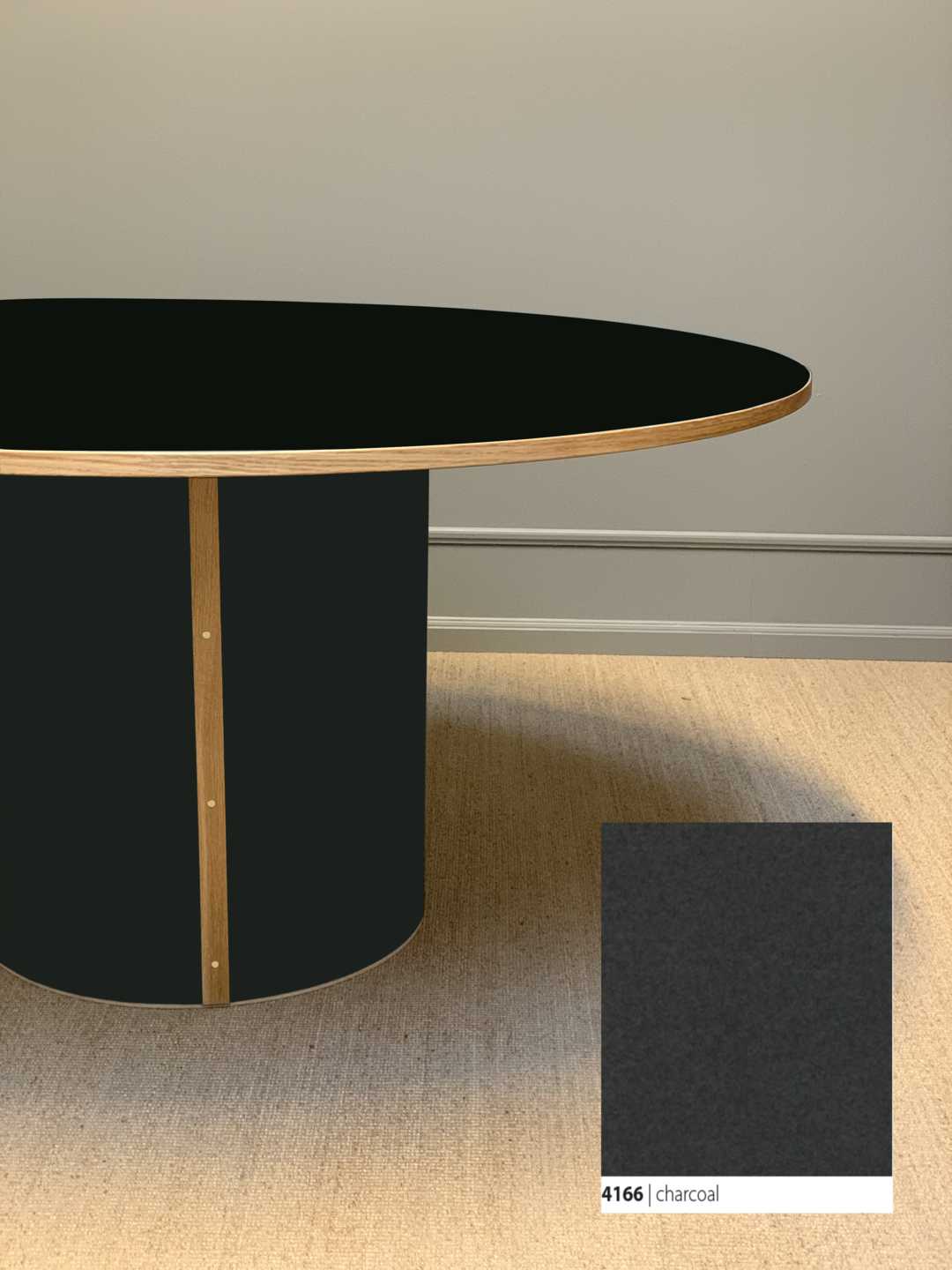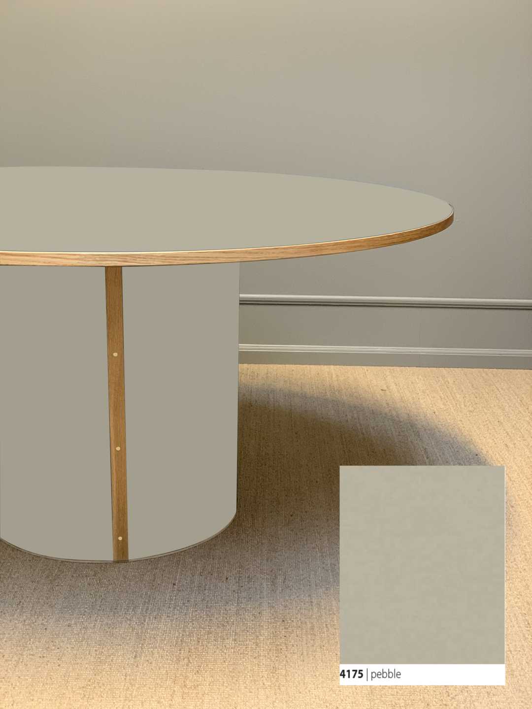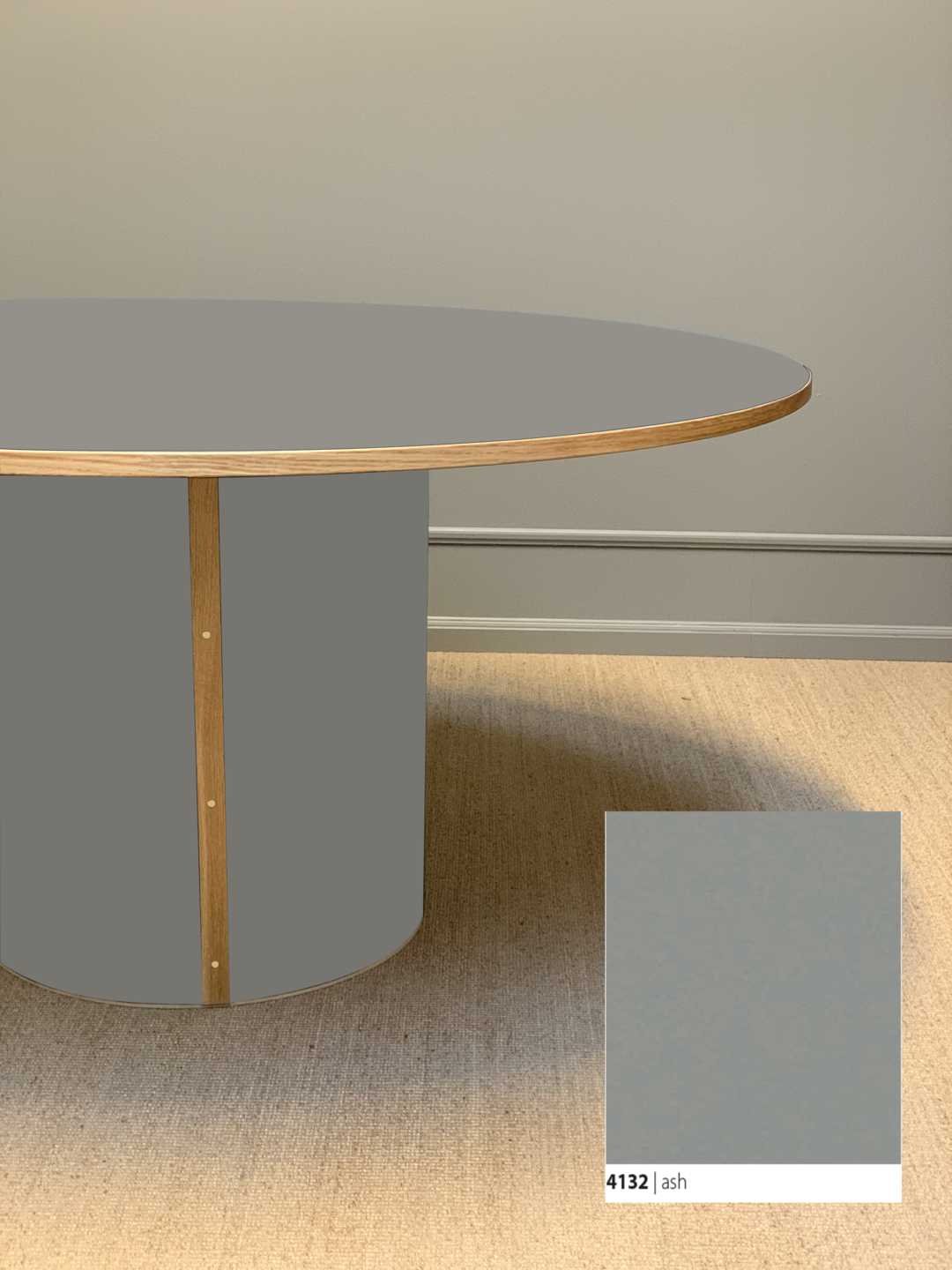 Søjlebenet er dimensioneret efter bordets diameter, hvilket sikrer både er balance i bordets designmæssige udtryk og stabilitet i hverdagen.