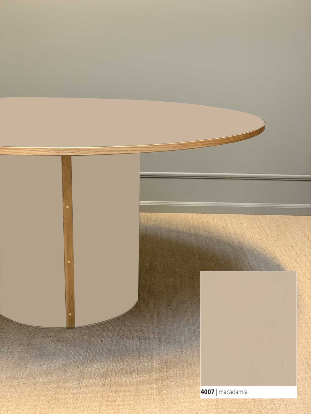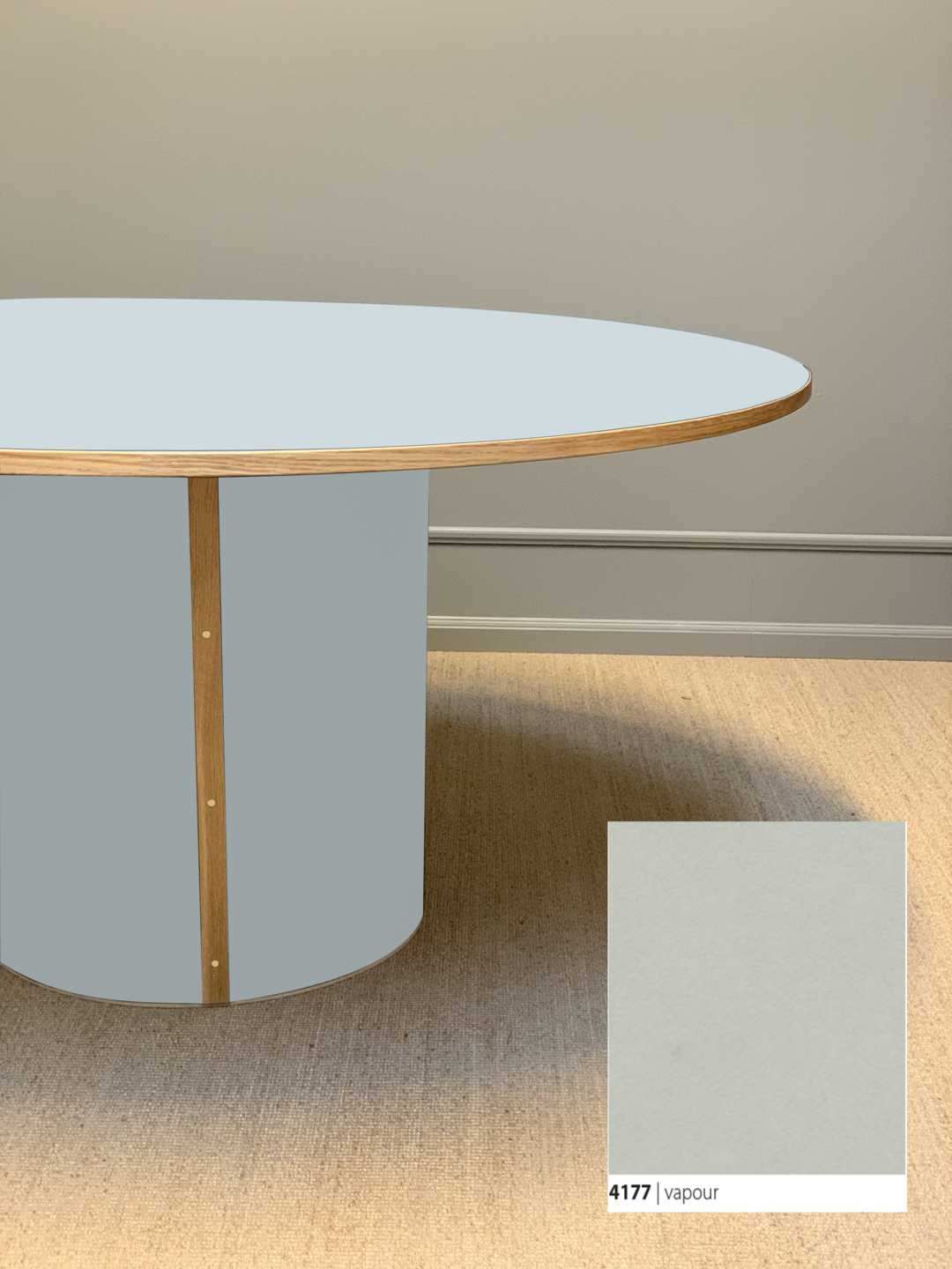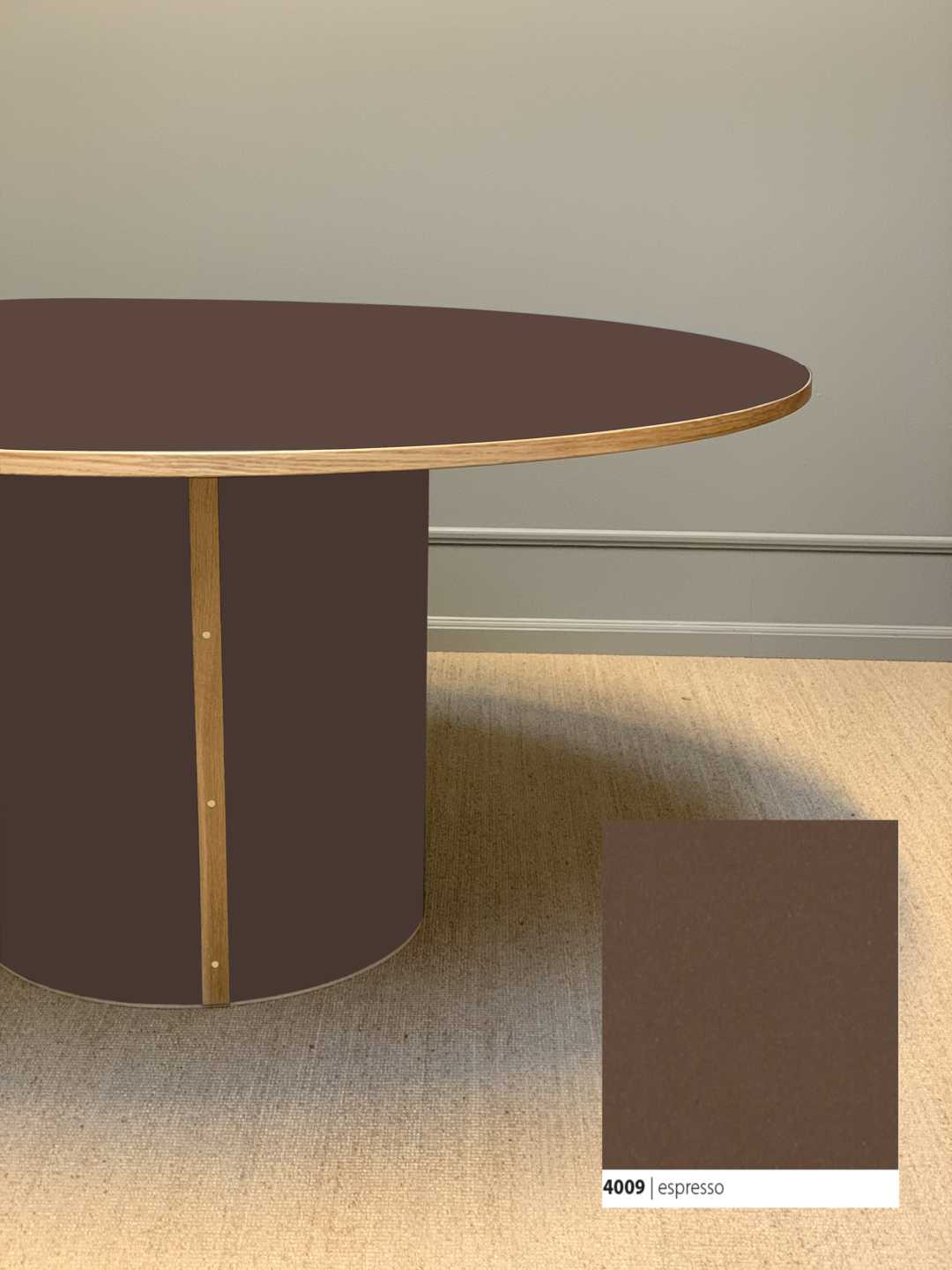 Søjlebenet er dimensioneret efter bordets diameter, hvilket sikrer både er balance i bordets designmæssige udtryk og stabilitet i hverdagen.