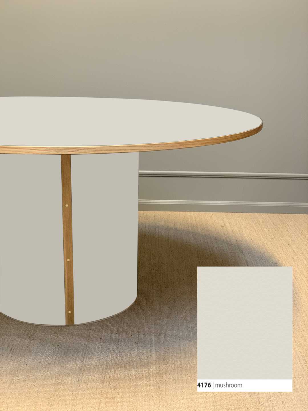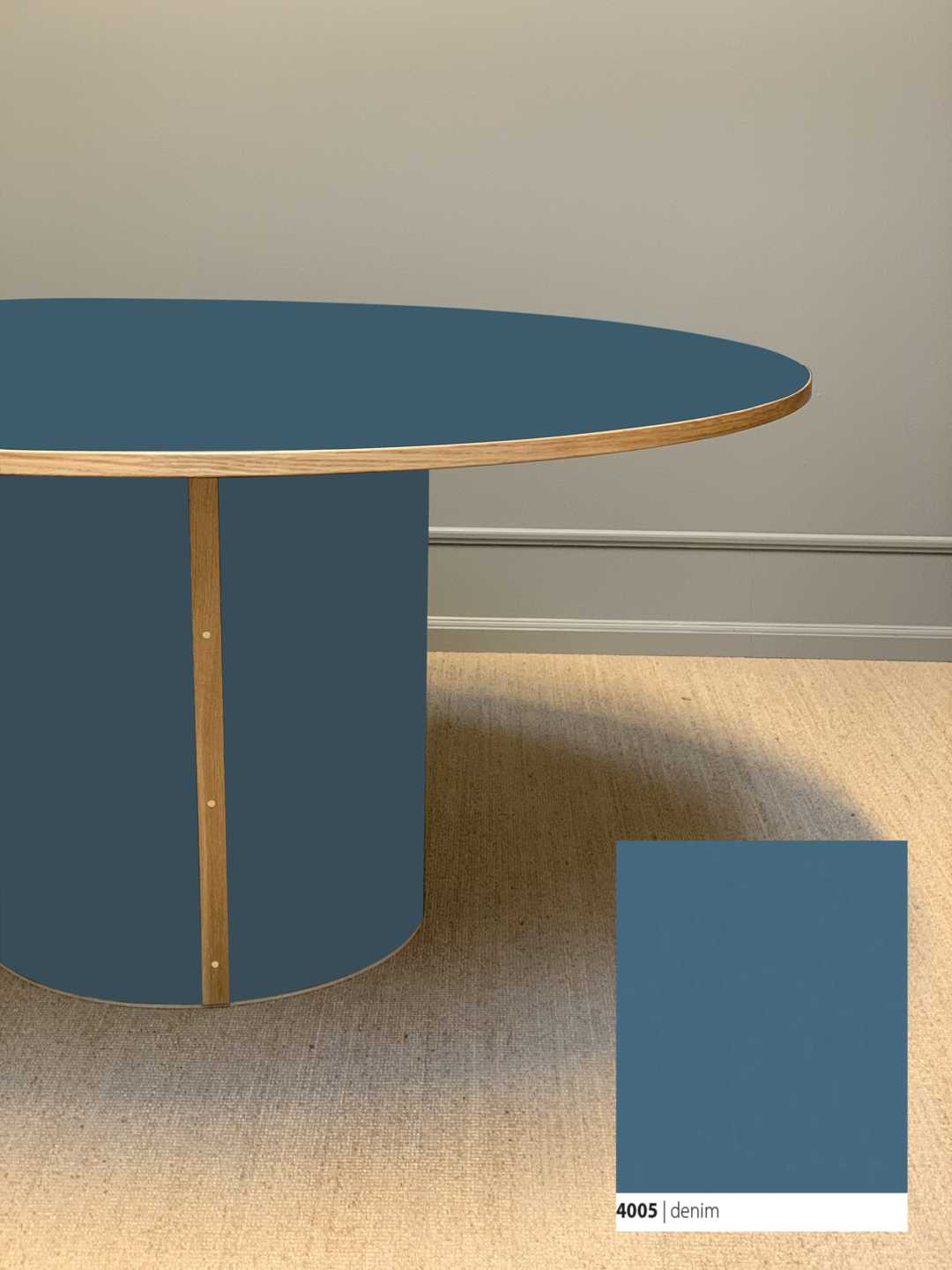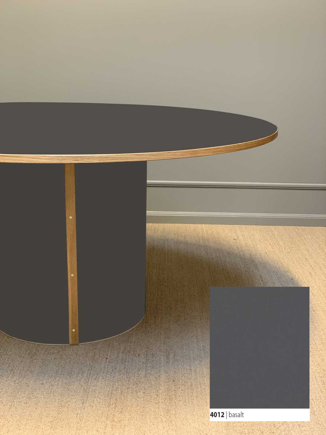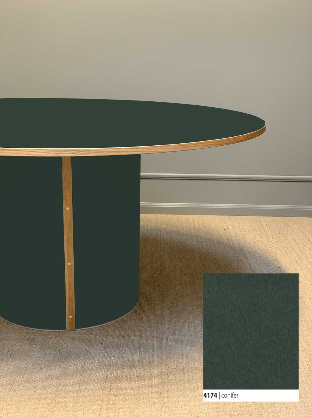 Søjlebenet er dimensioneret efter bordets diameter, hvilket sikrer både er balance i bordets designmæssige udtryk og stabilitet i hverdagen.