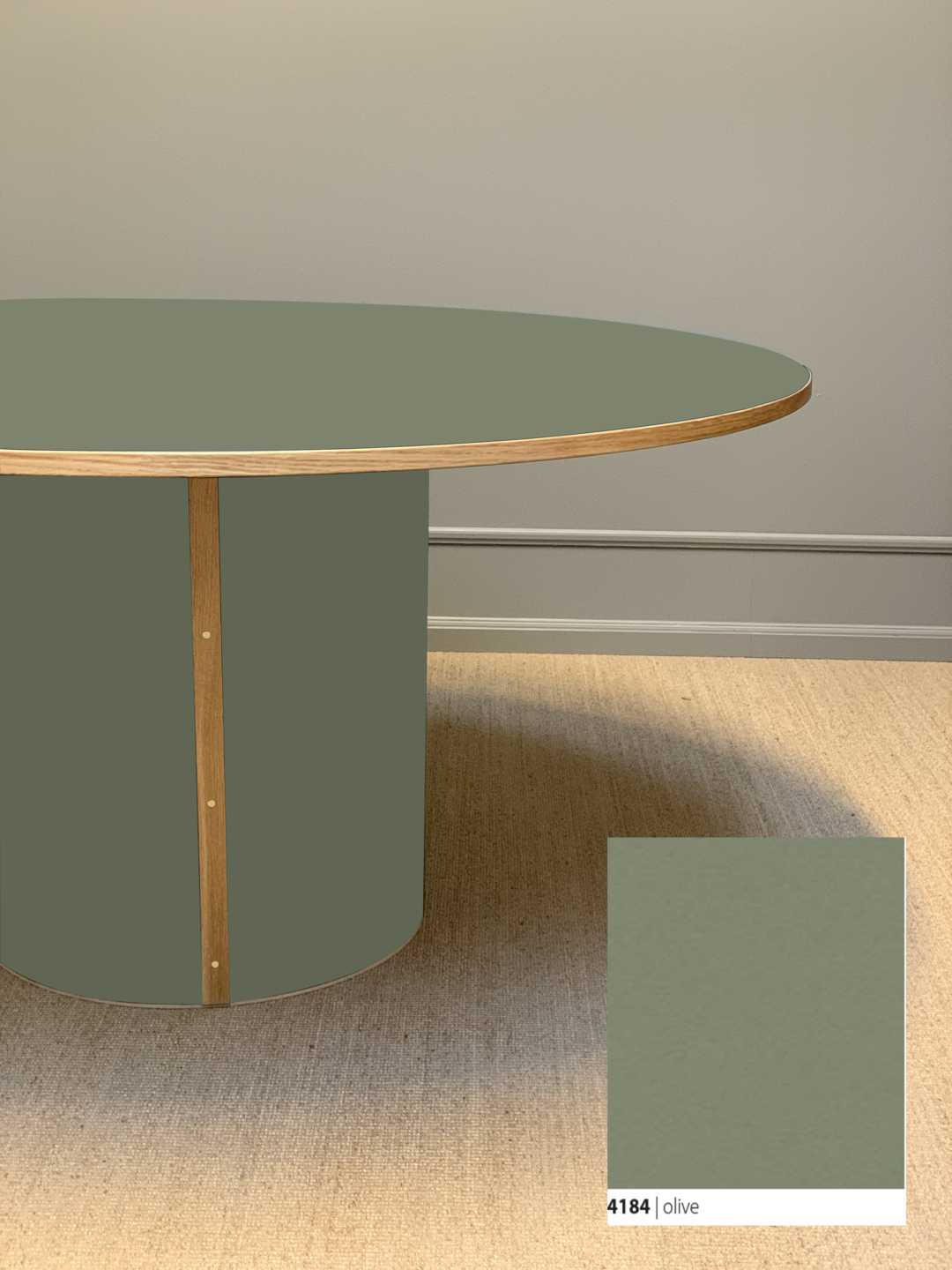 Et smukt og klassisk spisebord med et moderne udtryk, der tager afsæt i kombinationen af den bløde linoleumsbordplade, som både er funktionel og vedligeholdelsesvenlig, og et håndlavet smukt stel til at bære bordet.
