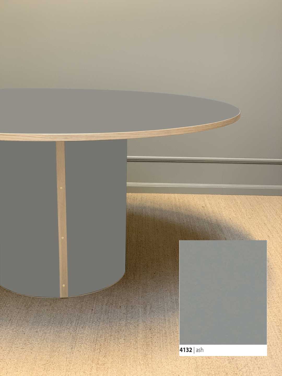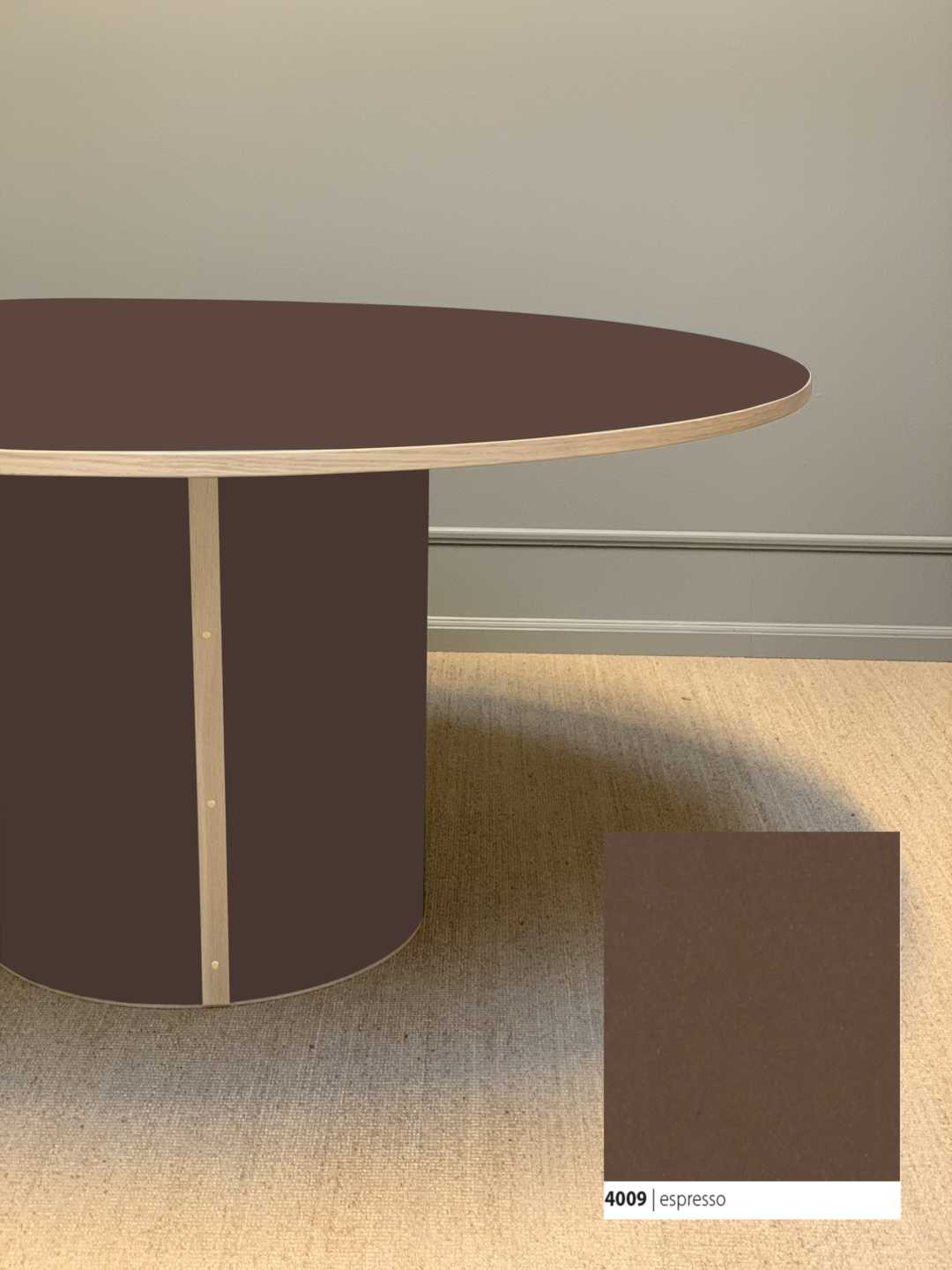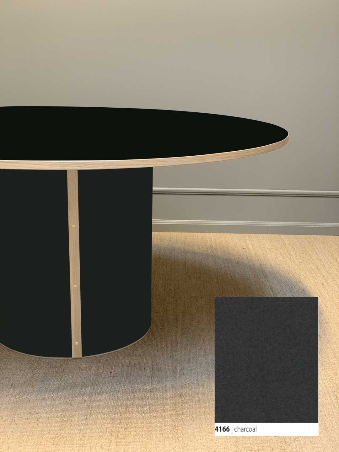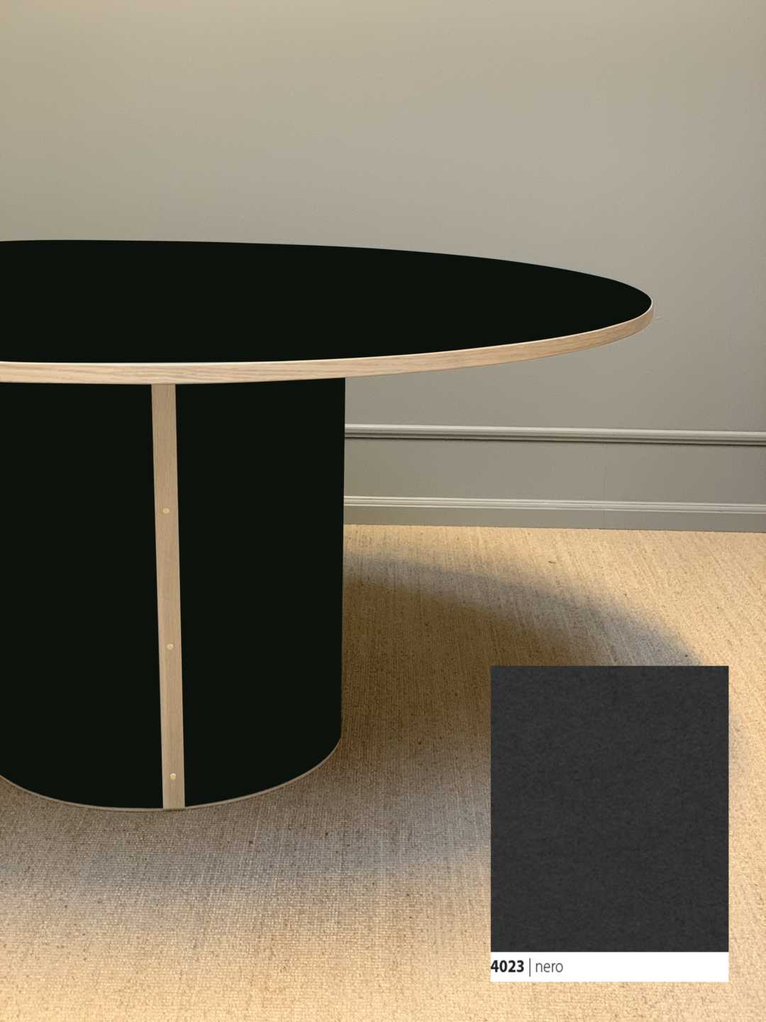 Moderne og stadig klassisk, rundt spisebord med et stabilt søjleben. Søjlebenet er dimensioneret efter bordets diameter, hvilket sikrer både er balance i bordets designmæssige udtryk og stabilitet i hverdagen.