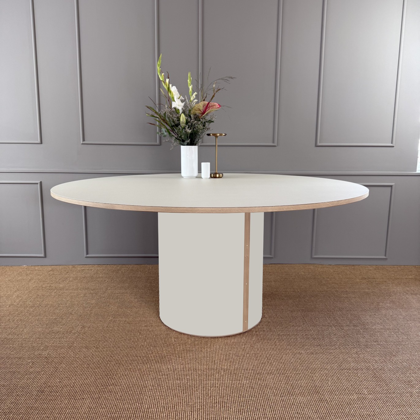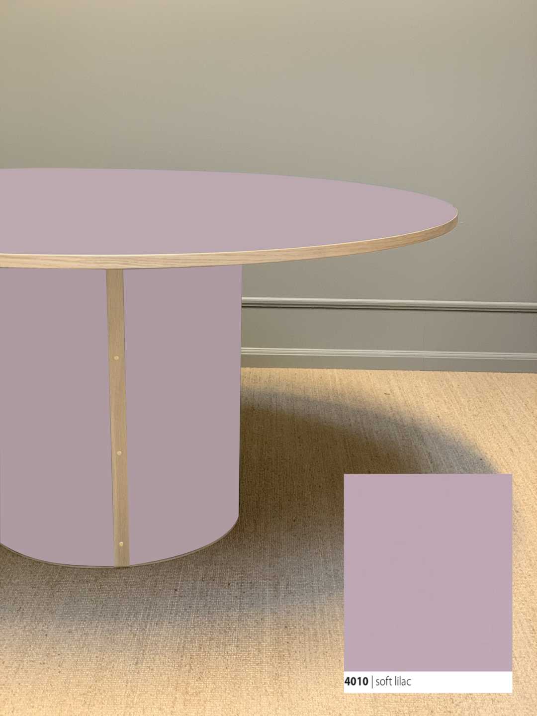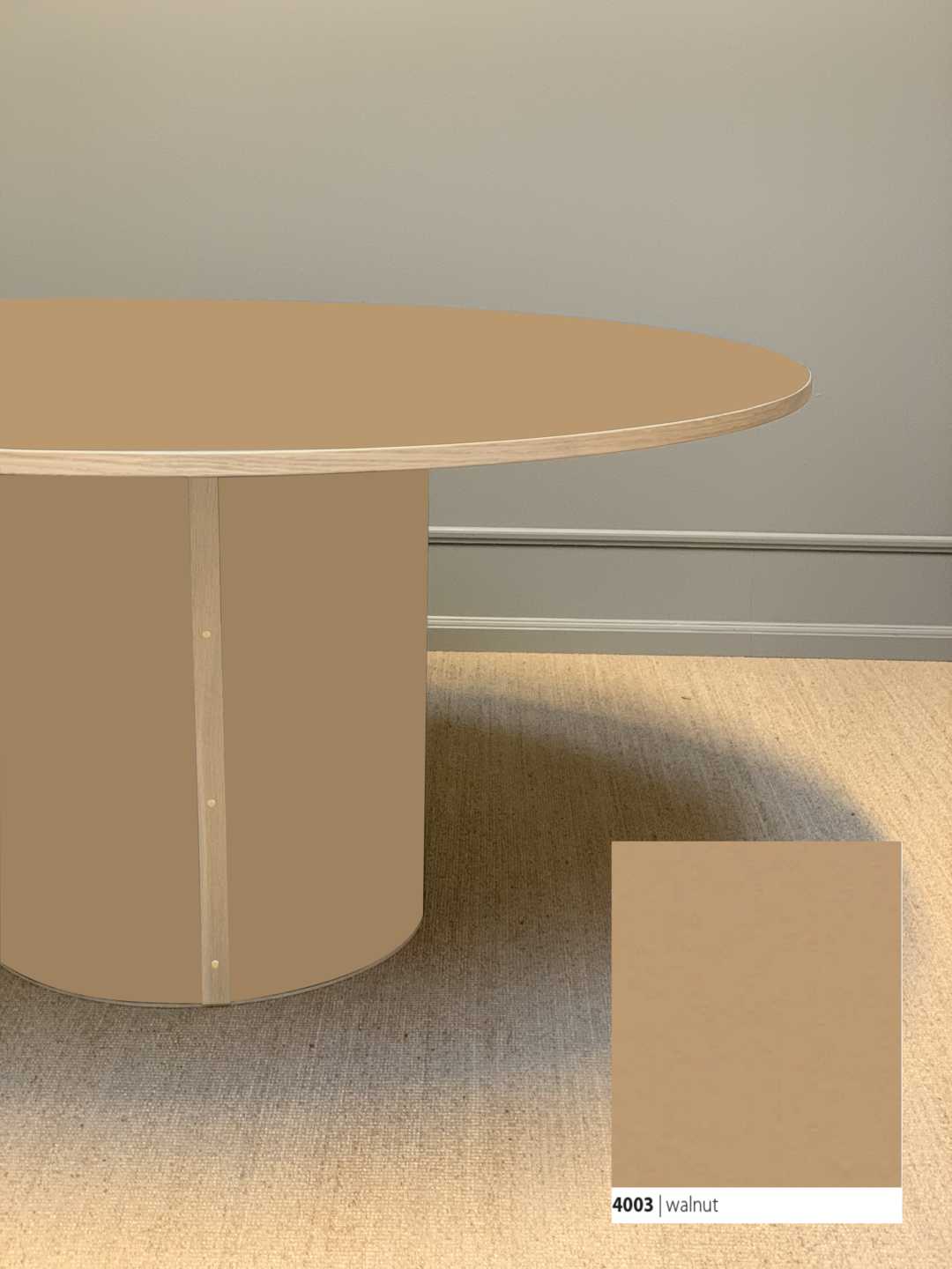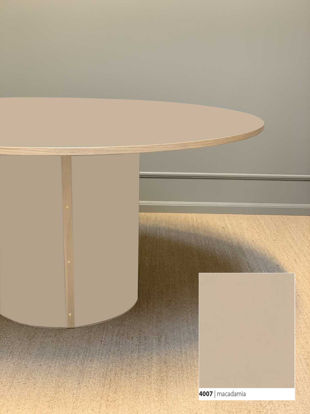 Moderne og stadig klassisk, rundt spisebord med et stabilt søjleben. Søjlebenet er dimensioneret efter bordets diameter, hvilket sikrer både er balance i bordets designmæssige udtryk og stabilitet i hverdagen.