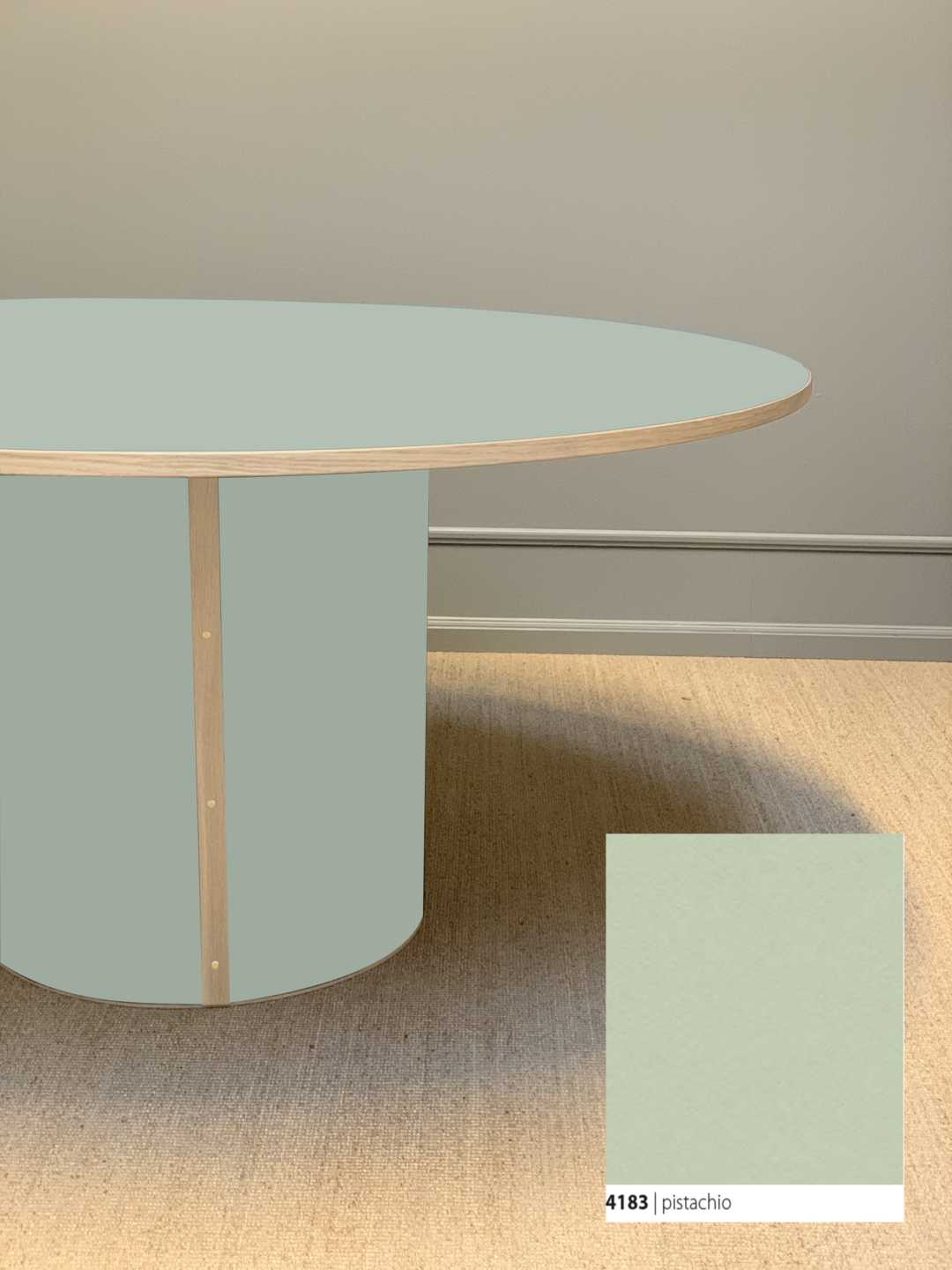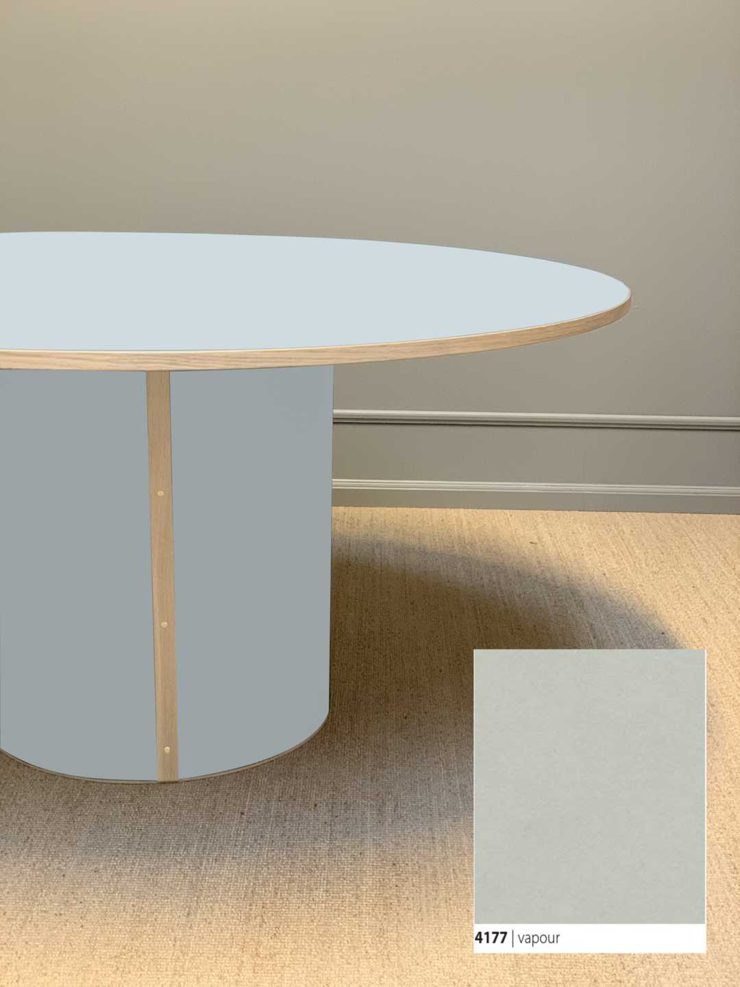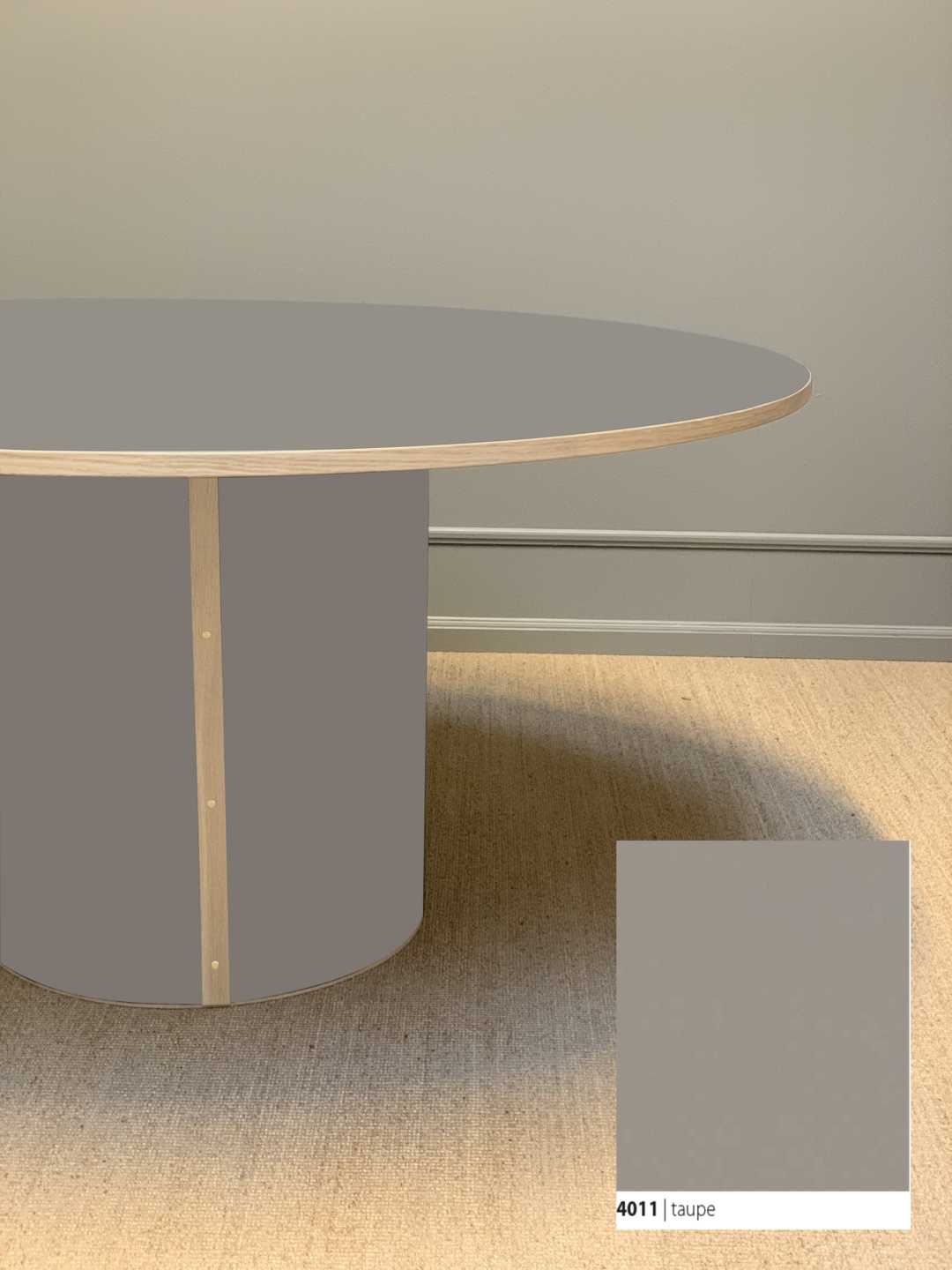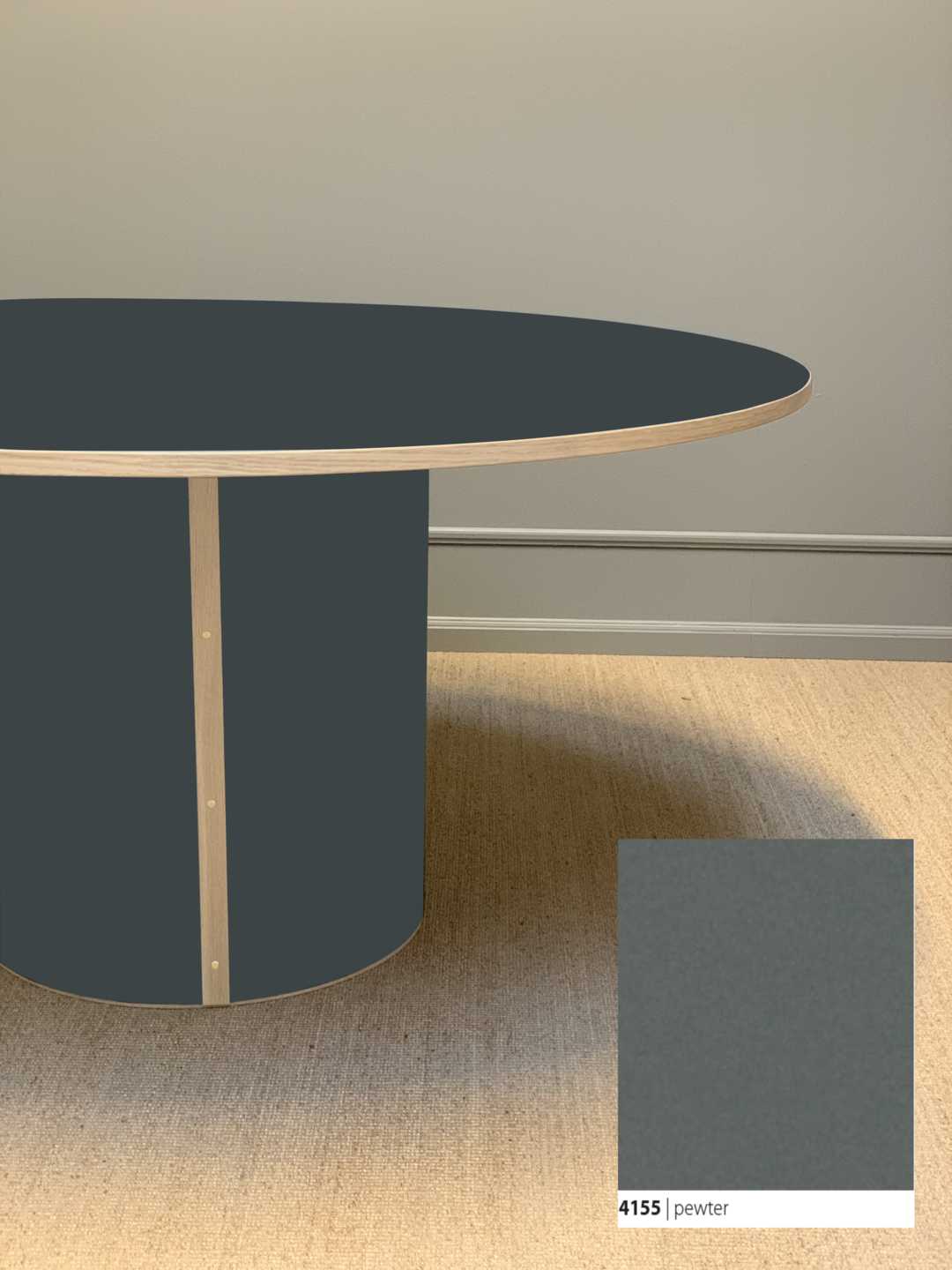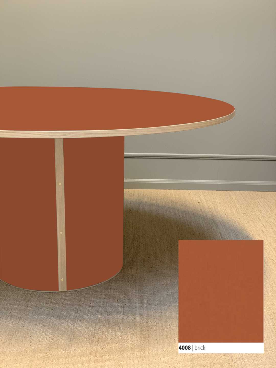 Moderne og stadig klassisk, rundt spisebord med et stabilt søjleben. Søjlebenet er dimensioneret efter bordets diameter, hvilket sikrer både er balance i bordets designmæssige udtryk og stabilitet i hverdagen.