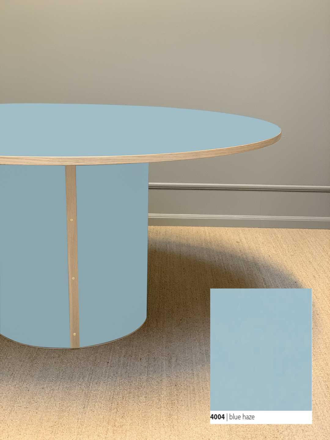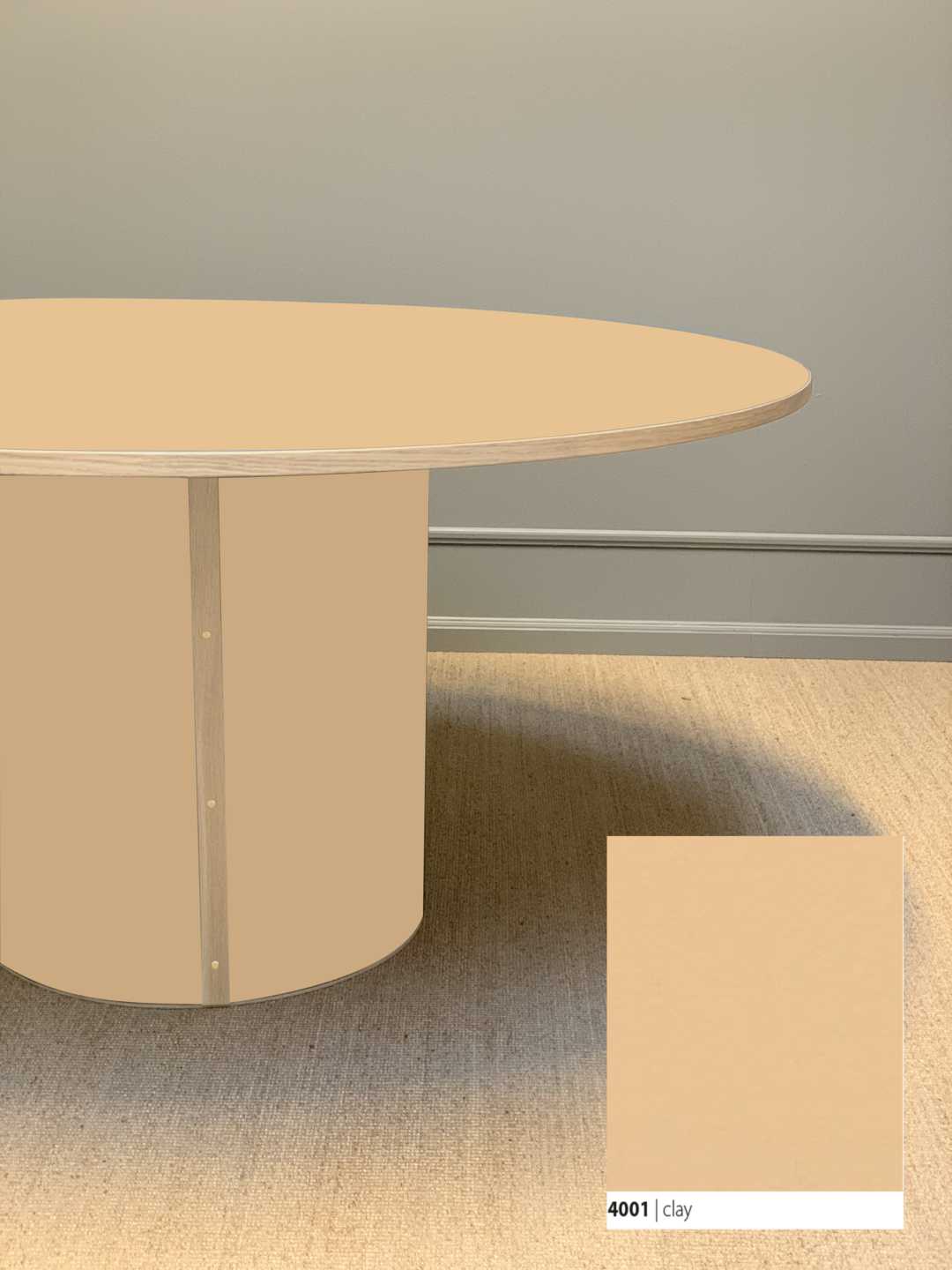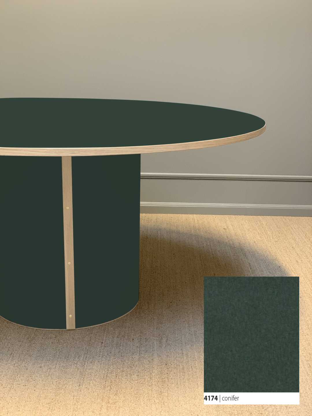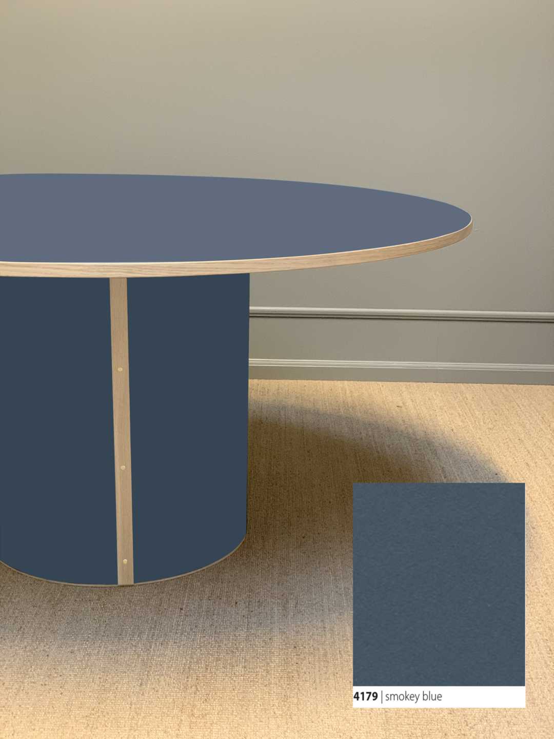 Moderne og stadig klassisk, rundt spisebord med et stabilt søjleben. Søjlebenet er dimensioneret efter bordets diameter, hvilket sikrer både er balance i bordets designmæssige udtryk og stabilitet i hverdagen.