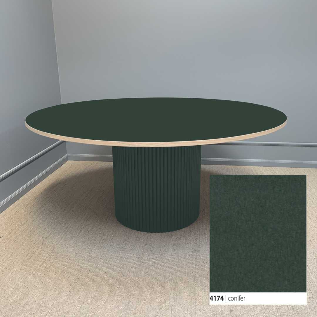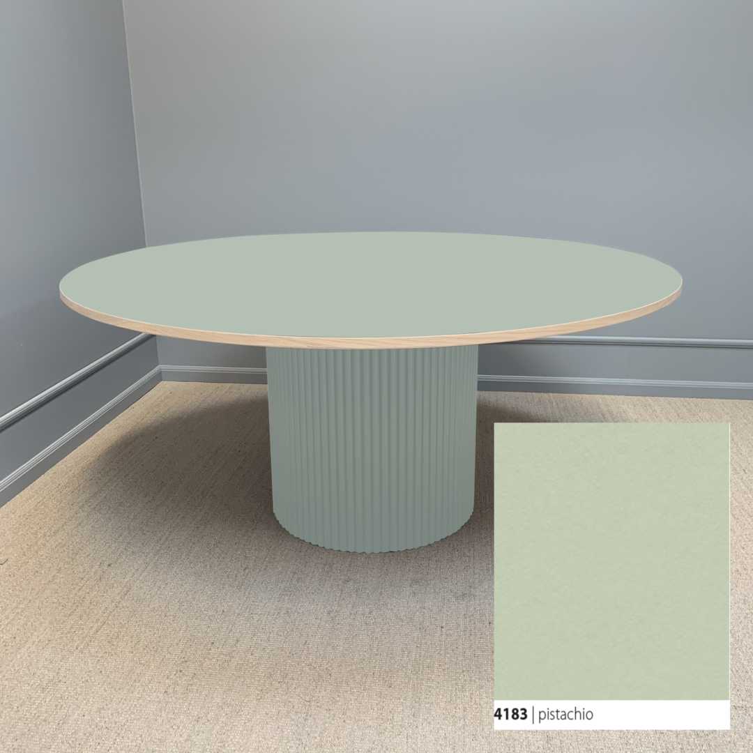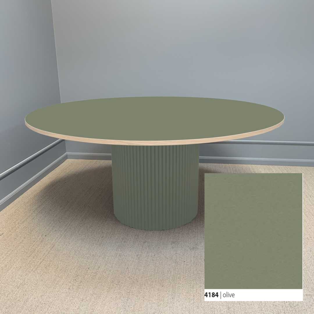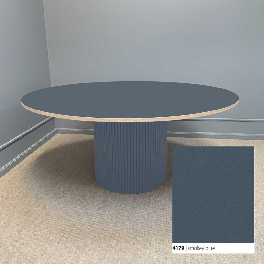 Et smukt og klassisk spisebord med et moderne udtryk, der tager afsæt i kombinationen af den bløde linoleumsbordplade, som både er funktionel og vedligeholdelsesvenlig, og et håndlavet smukt stel til at bære bordet.
