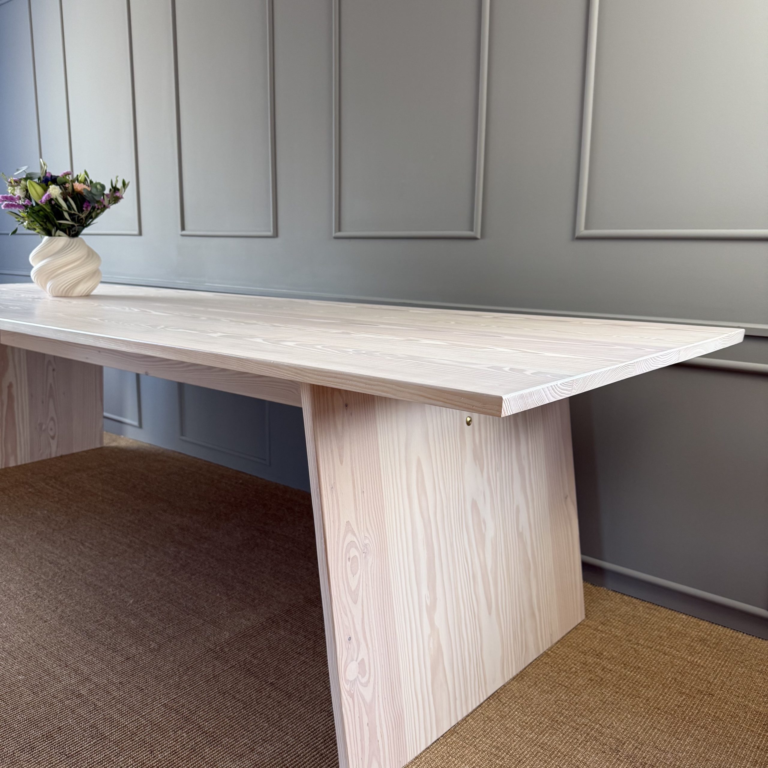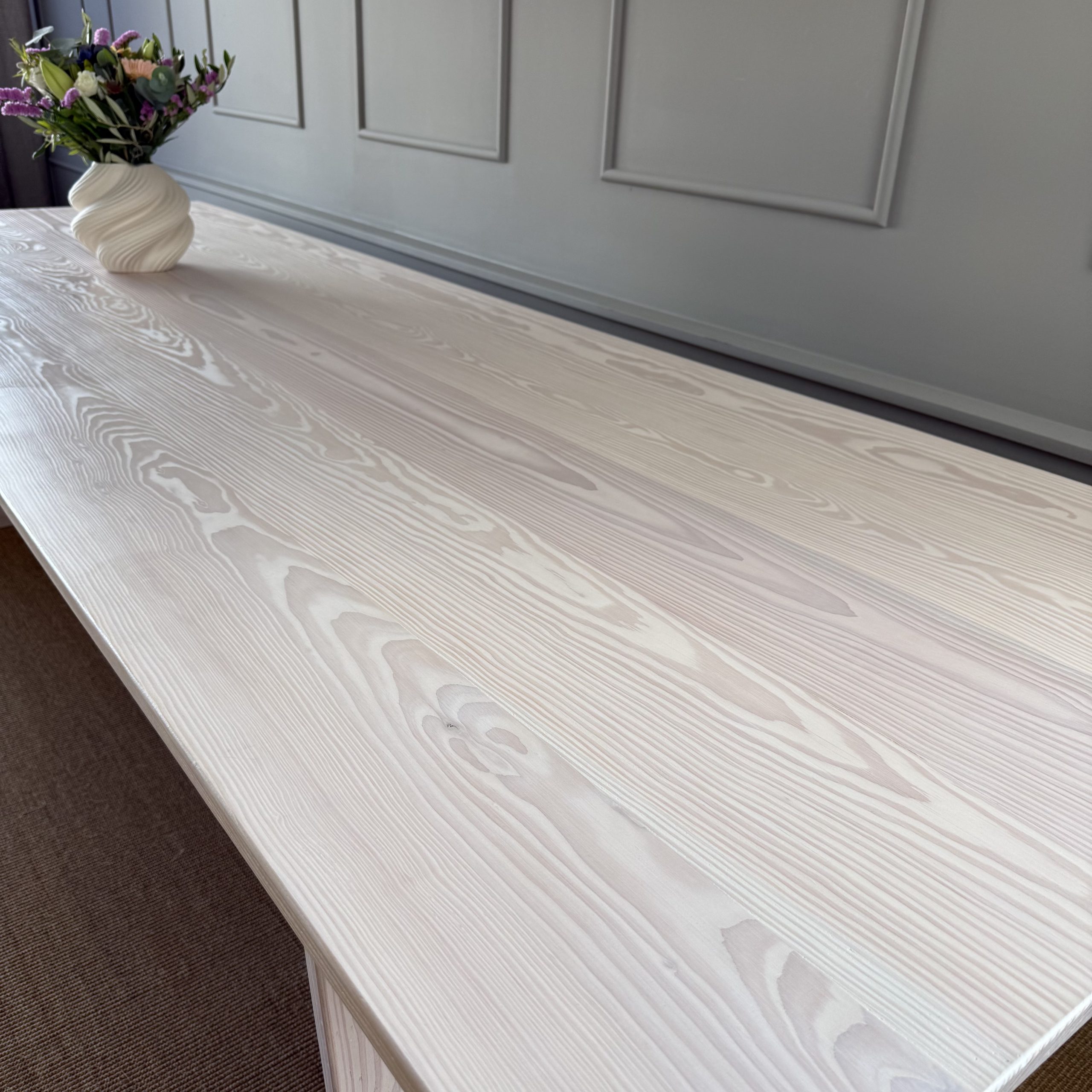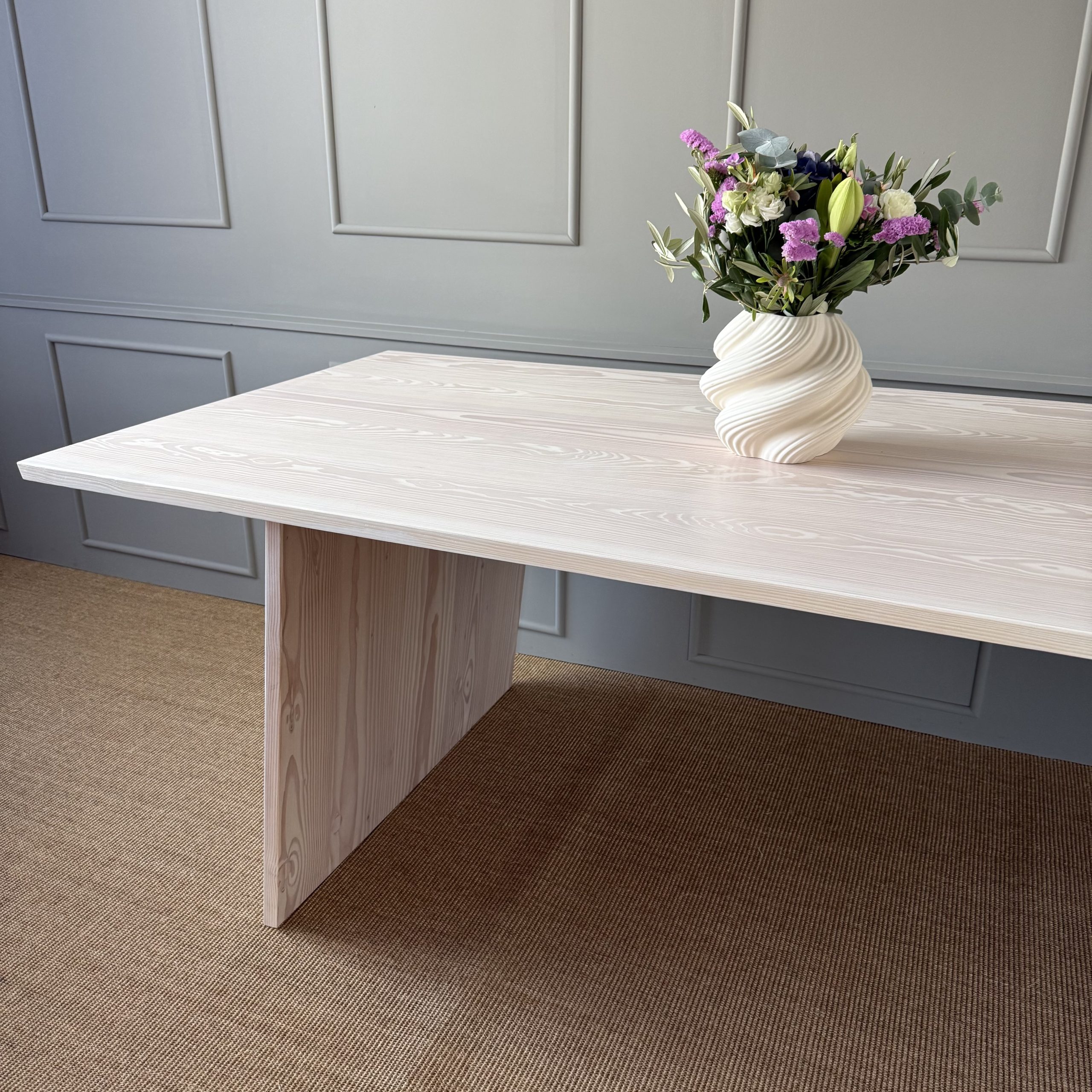 Et smukt og klassisk bord med et moderne udtryk, der tager afsæt nordiske stil med det lyse hvidpigmenterede douglas gran, som passer perfekt ind i det stilbevidste hjem.